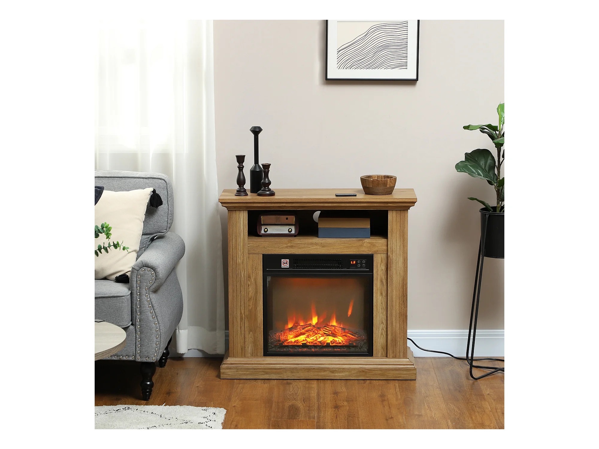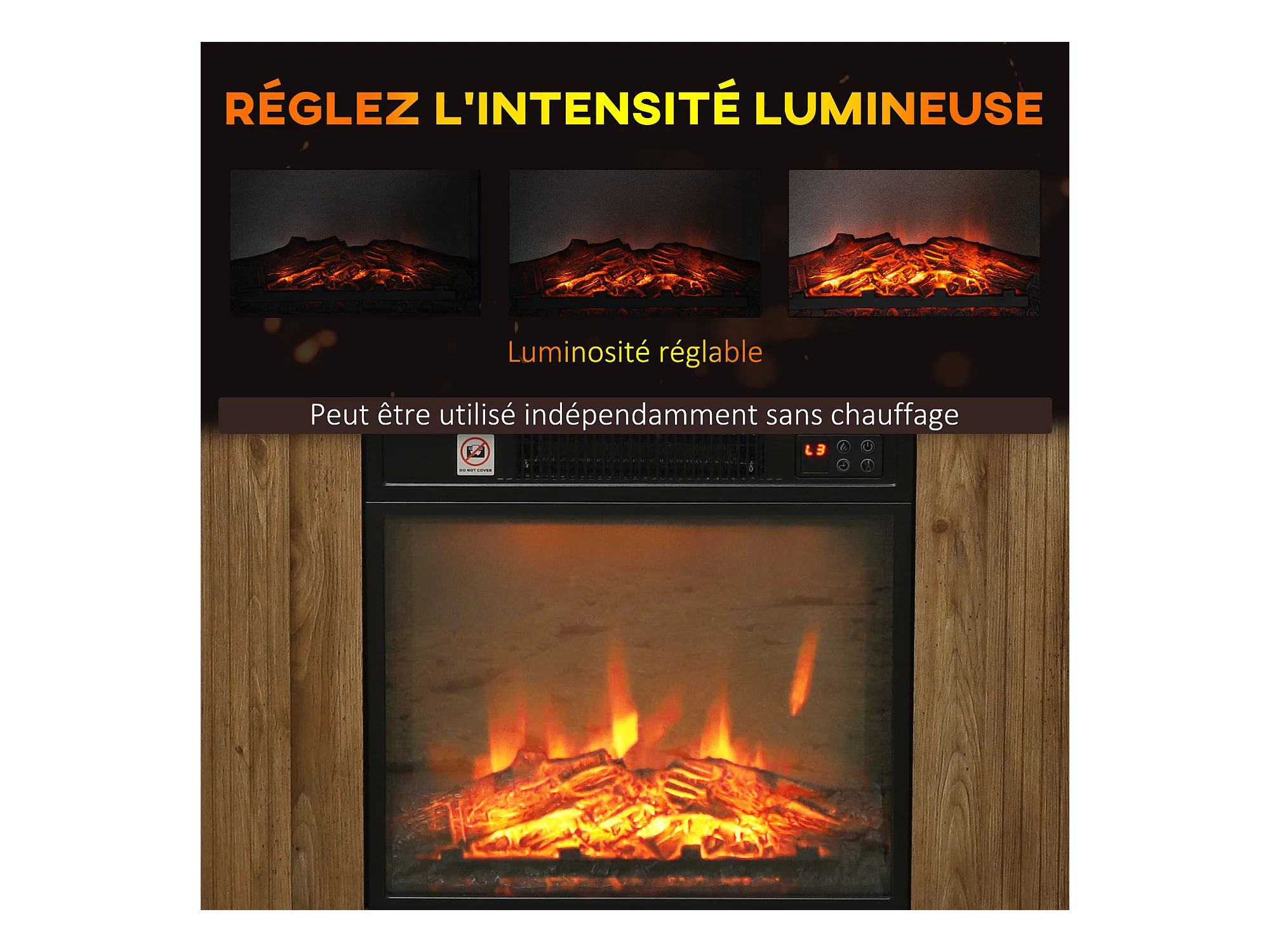 Cheminée électrique style montagnard aspect bois - niche, télécommande, timer - max. 1800W