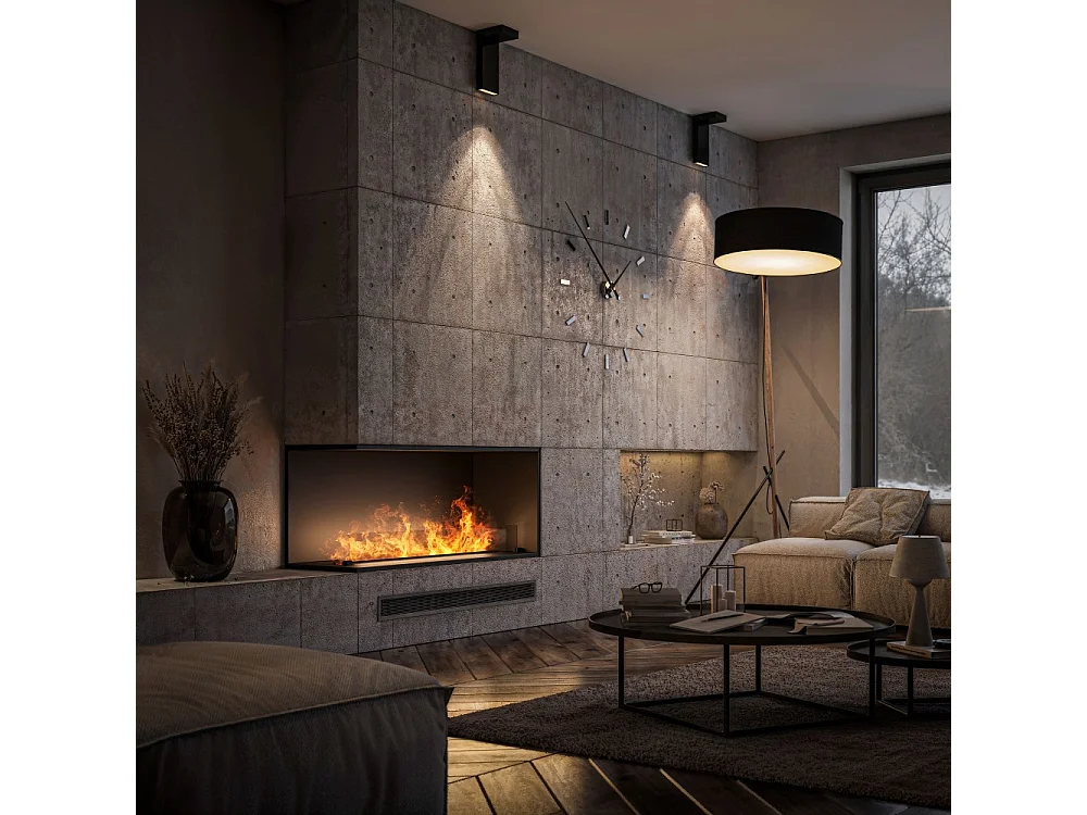Cheminée vapeur d'eau encastrable Corner L1200 - Flammes LED 3D multicolores, app mobile, réservoir 2,4L, remplissage auto - 120 cm