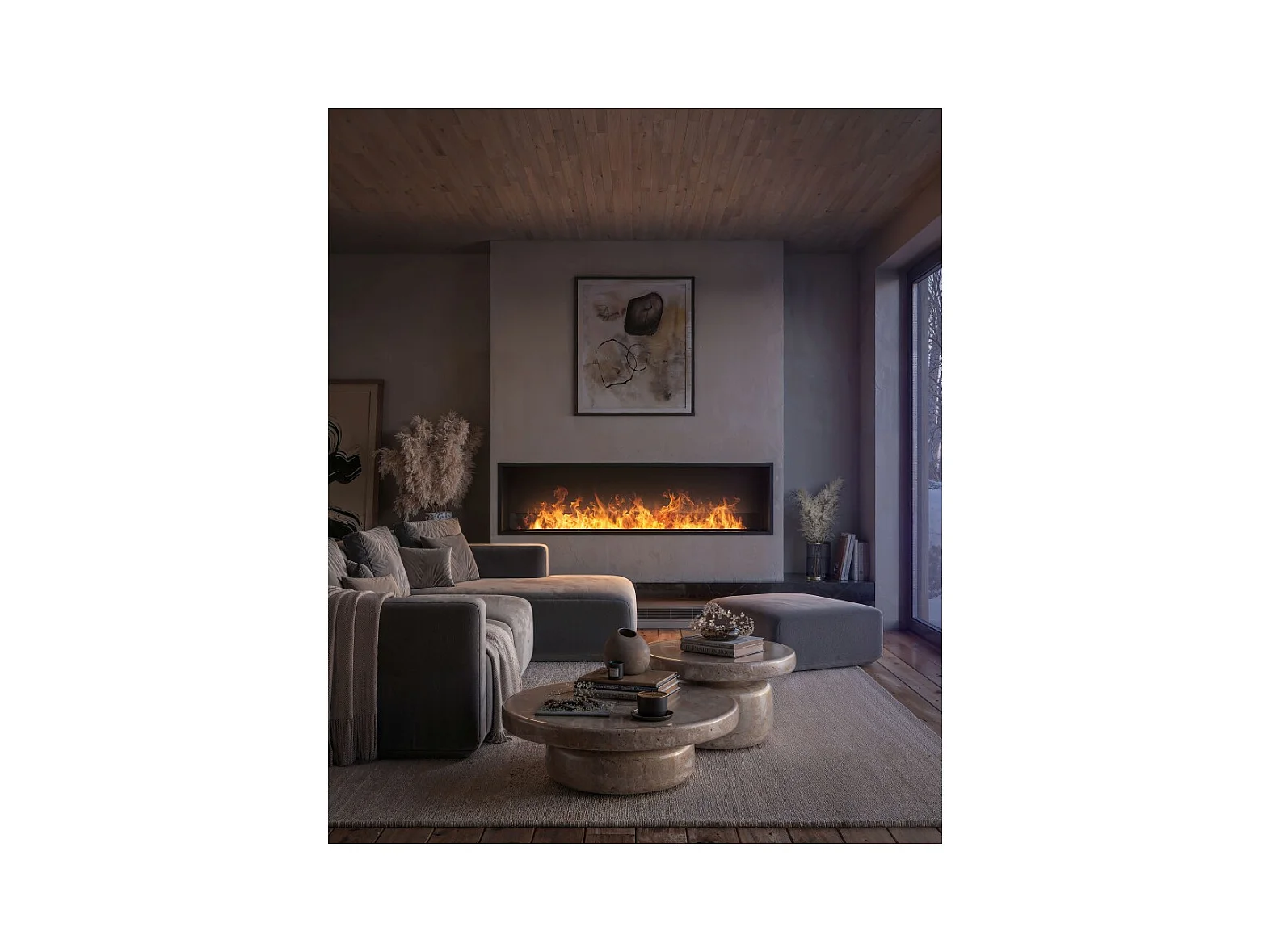 Cheminée vapeur d'eau Inside 2200 - Flammes LED 3D multicolores, appli mobile, réservoir 2,4L, remplissage automatique - 220 cm