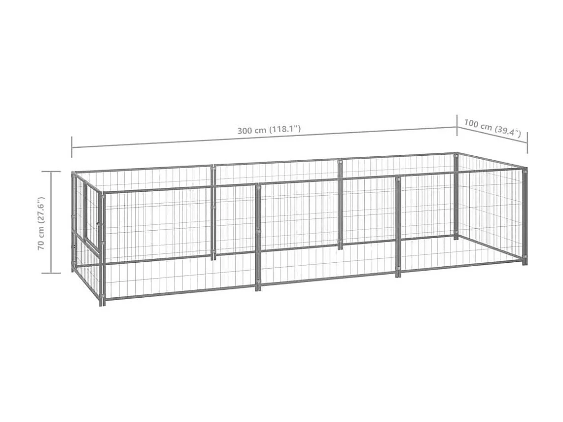 Chenil extérieur cage enclos argenté 300 x 100 x 70 cm 02_0000264