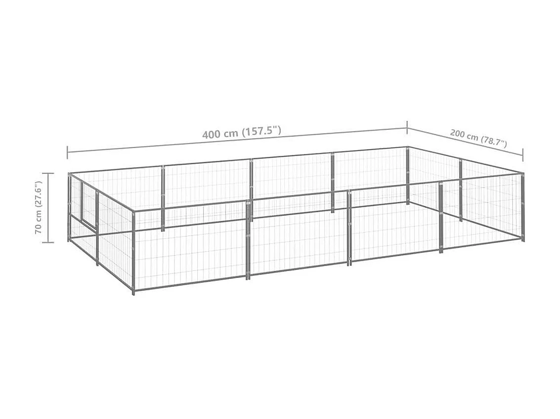 Chenil extérieur cage enclos argenté 400 x 200 x 70 cm 02_0000302