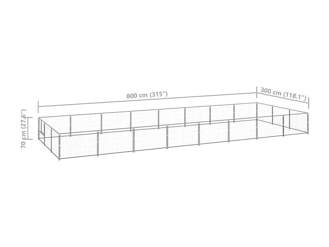 Chenil extérieur cage enclos argenté 800 x 300 x 70 cm 02_0000256