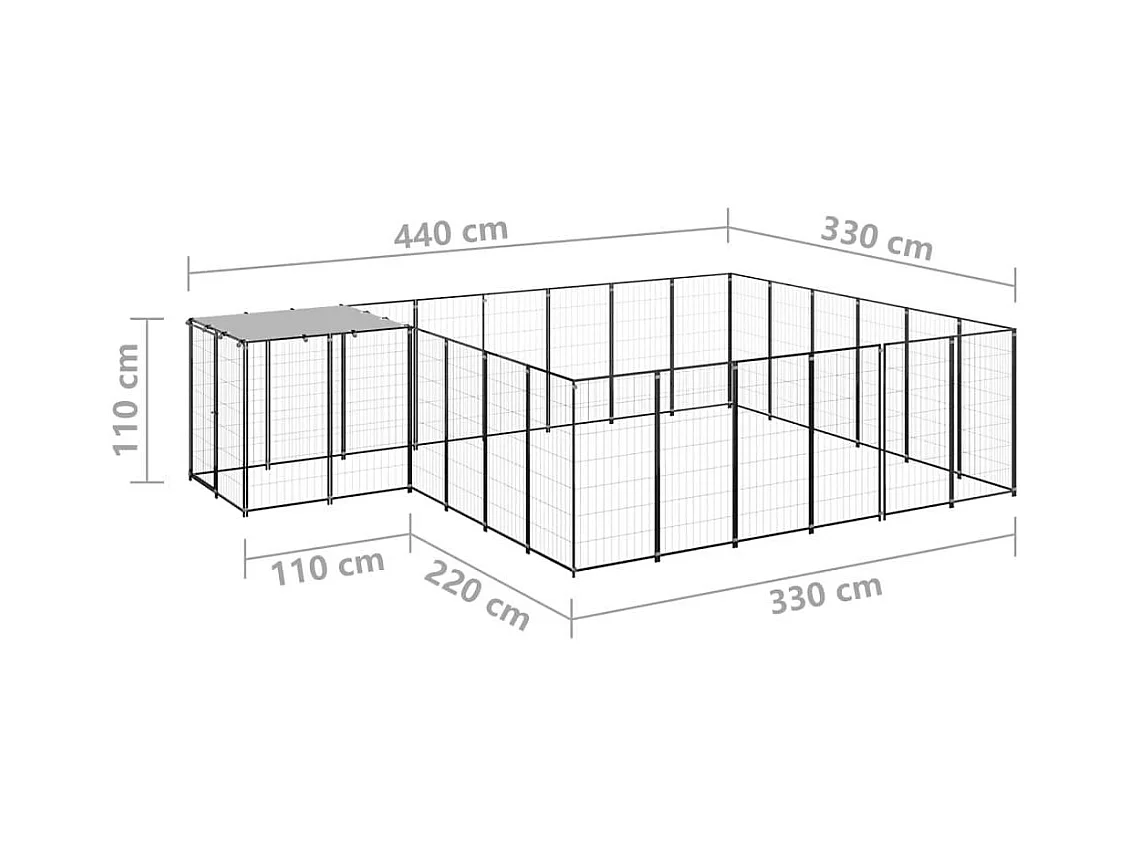 Chenil extérieur cage enclos noire 440 x 330 x 110 cm 02_0000493