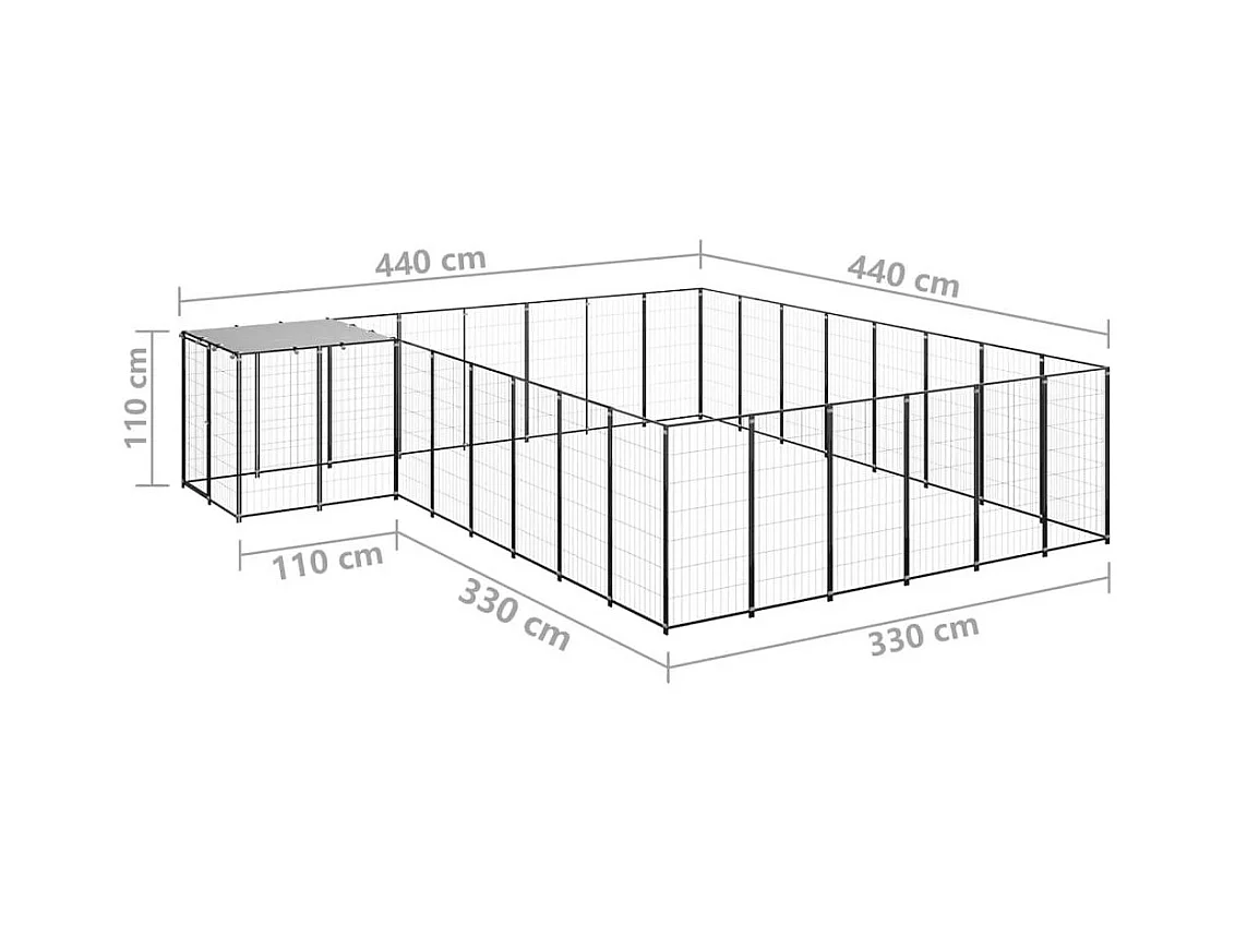 Chenil extérieur cage enclos noire 440 x 440 x 110 cm 02_0000498