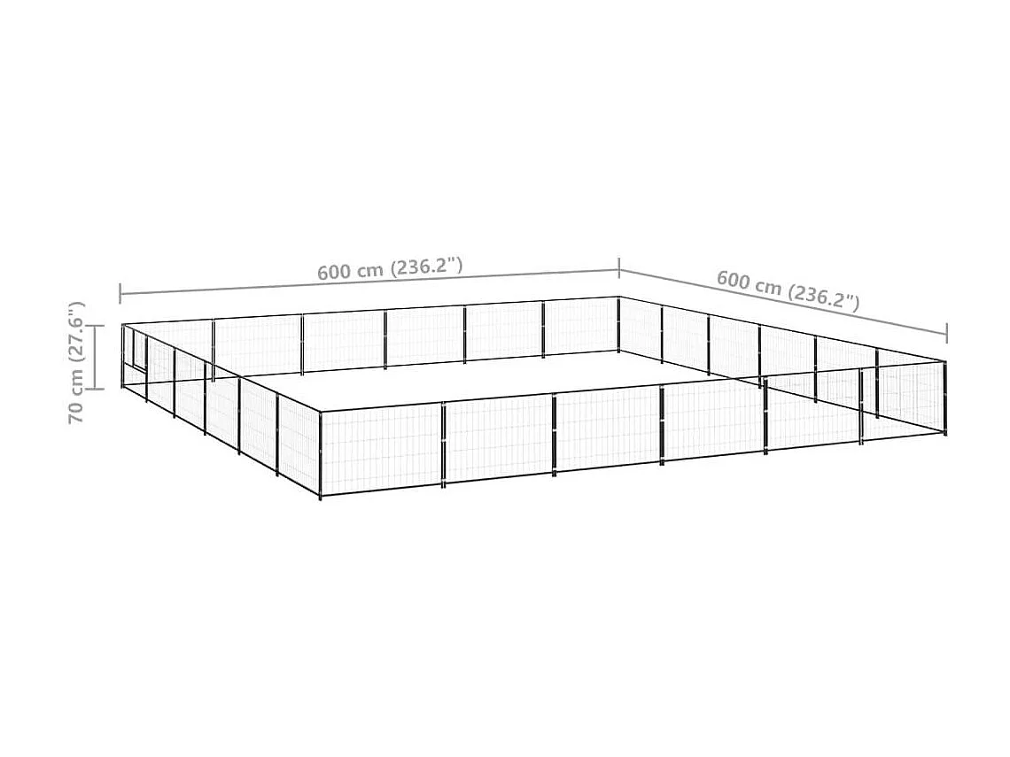 Chenil extérieur cage enclos noire 600 x 600 x 70 cm 02_0000528