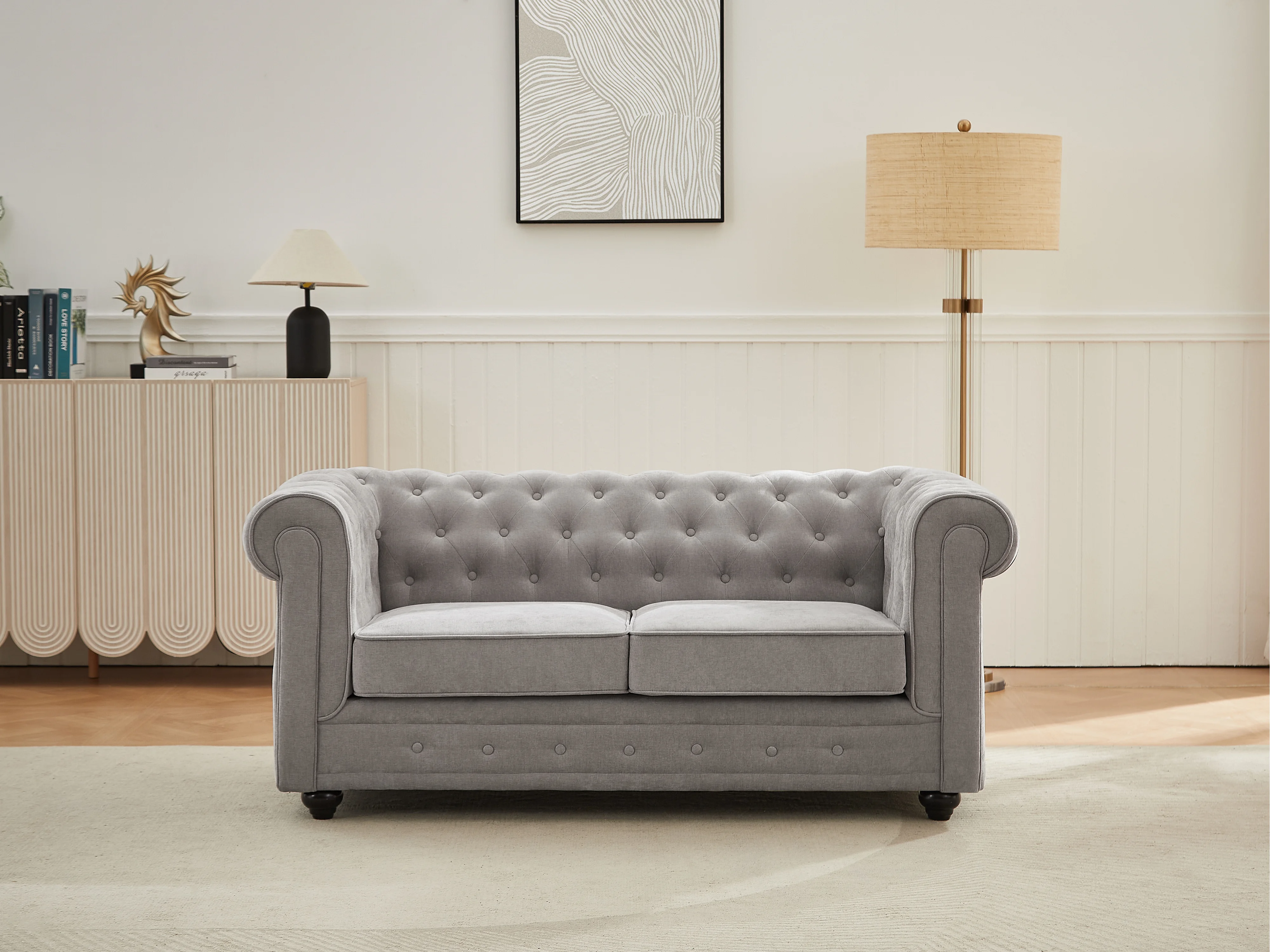 Canapé 2 places en tissu gris CHESTERFIELD