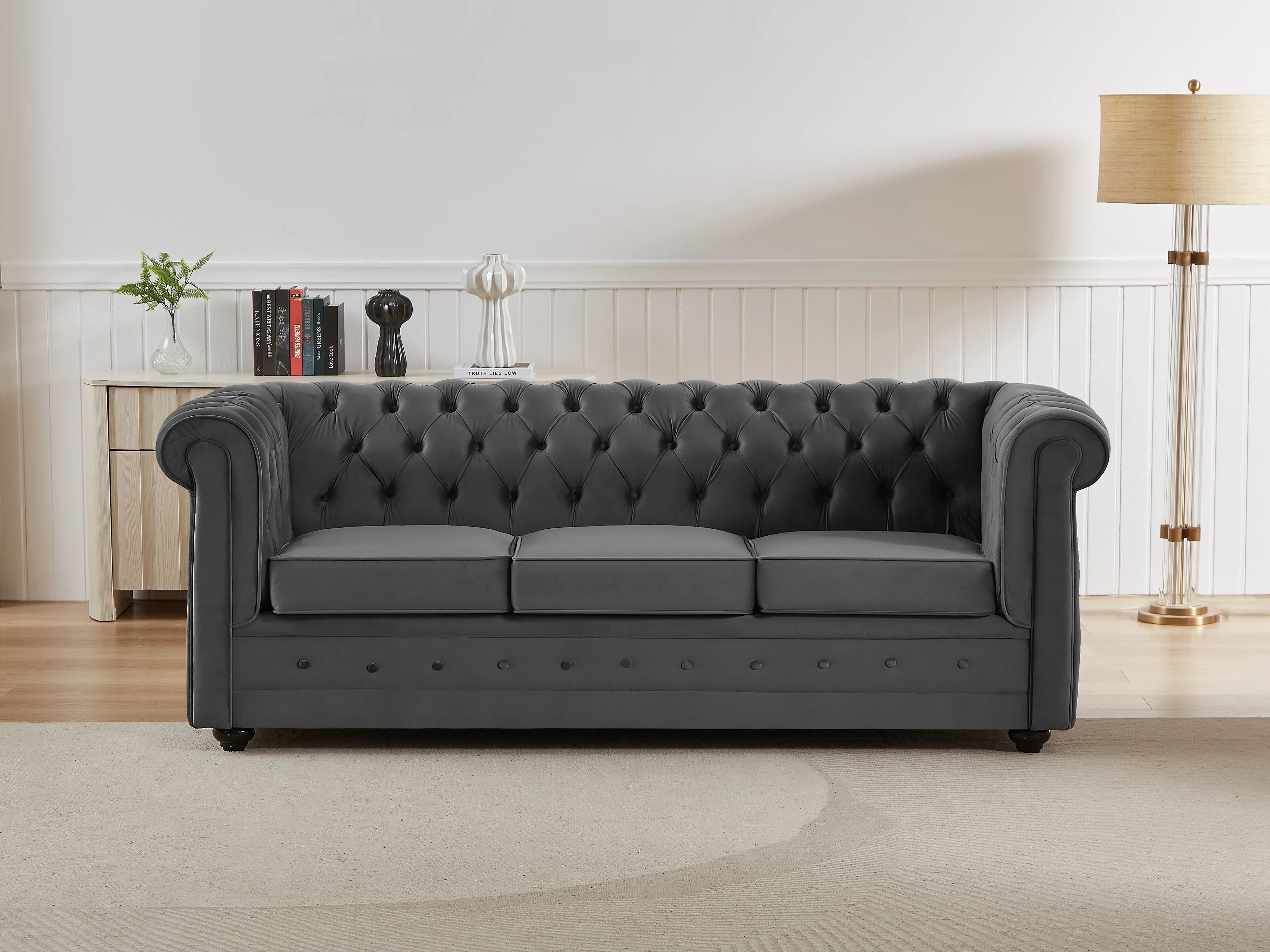 Canapé 3 places convertible en velours gris anthracite CHESTERFIELD