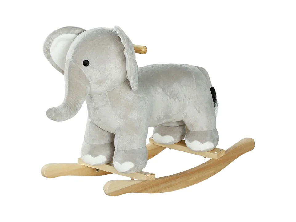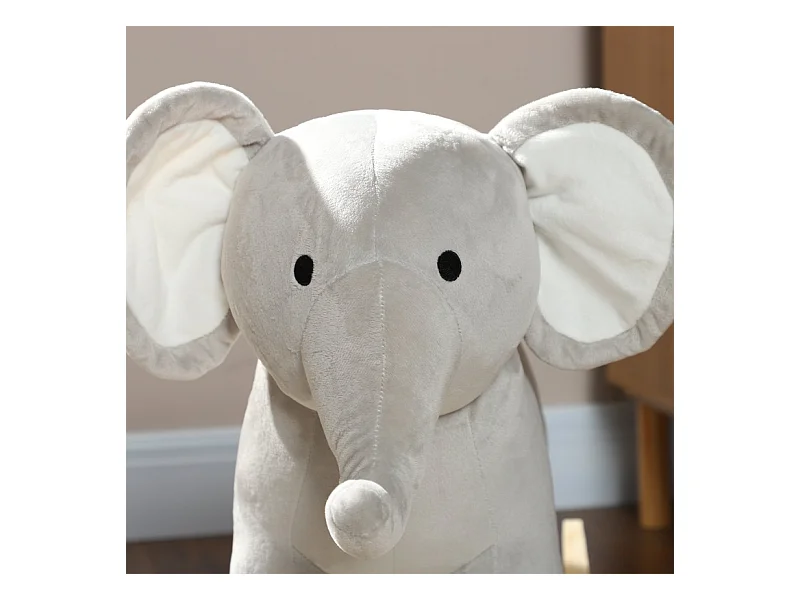 Cheval à bascule éléphant, effets sonores, base stable, polyester, gris (64.5x31x52cm)