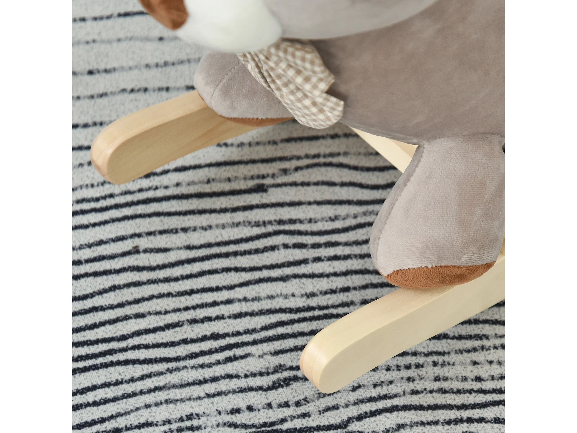 Cheval à bascule modèle âne fonction musicale selle grand confort peluche courte douce bois peuplier gris dim. 61L x 34l x 58H cm