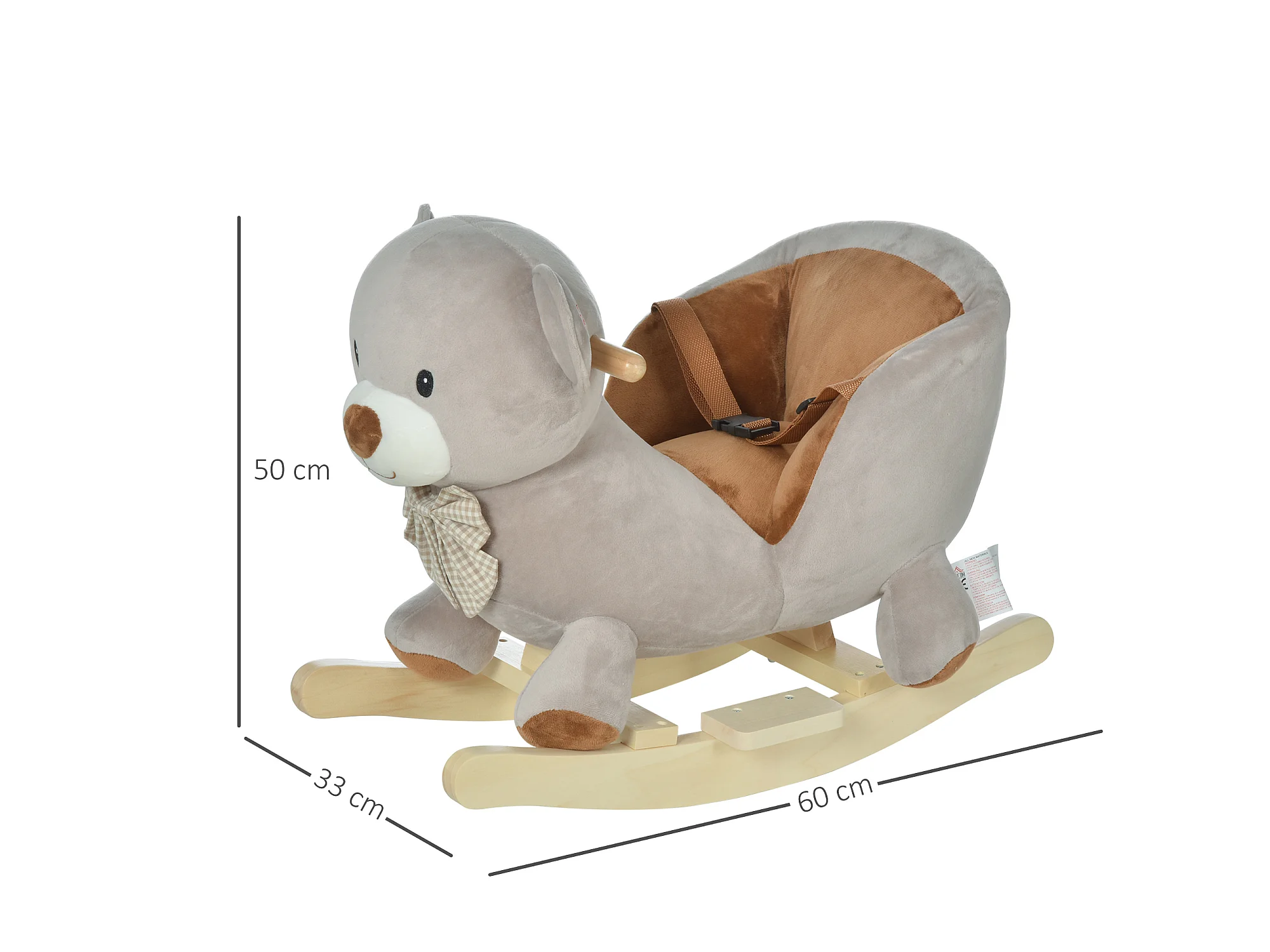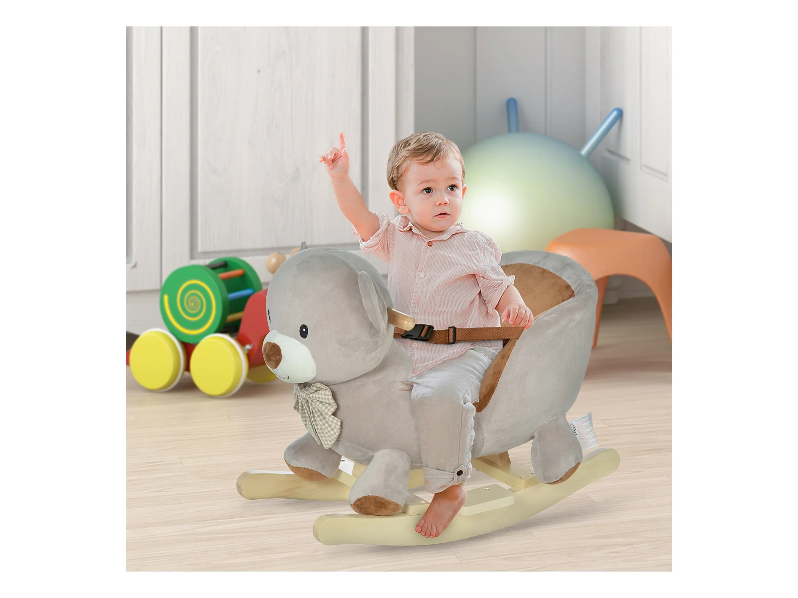 Cheval à bascule jouet à bascule ourson fauteuil intégré ceinture de sécurité fonction sonore grognement gris marron