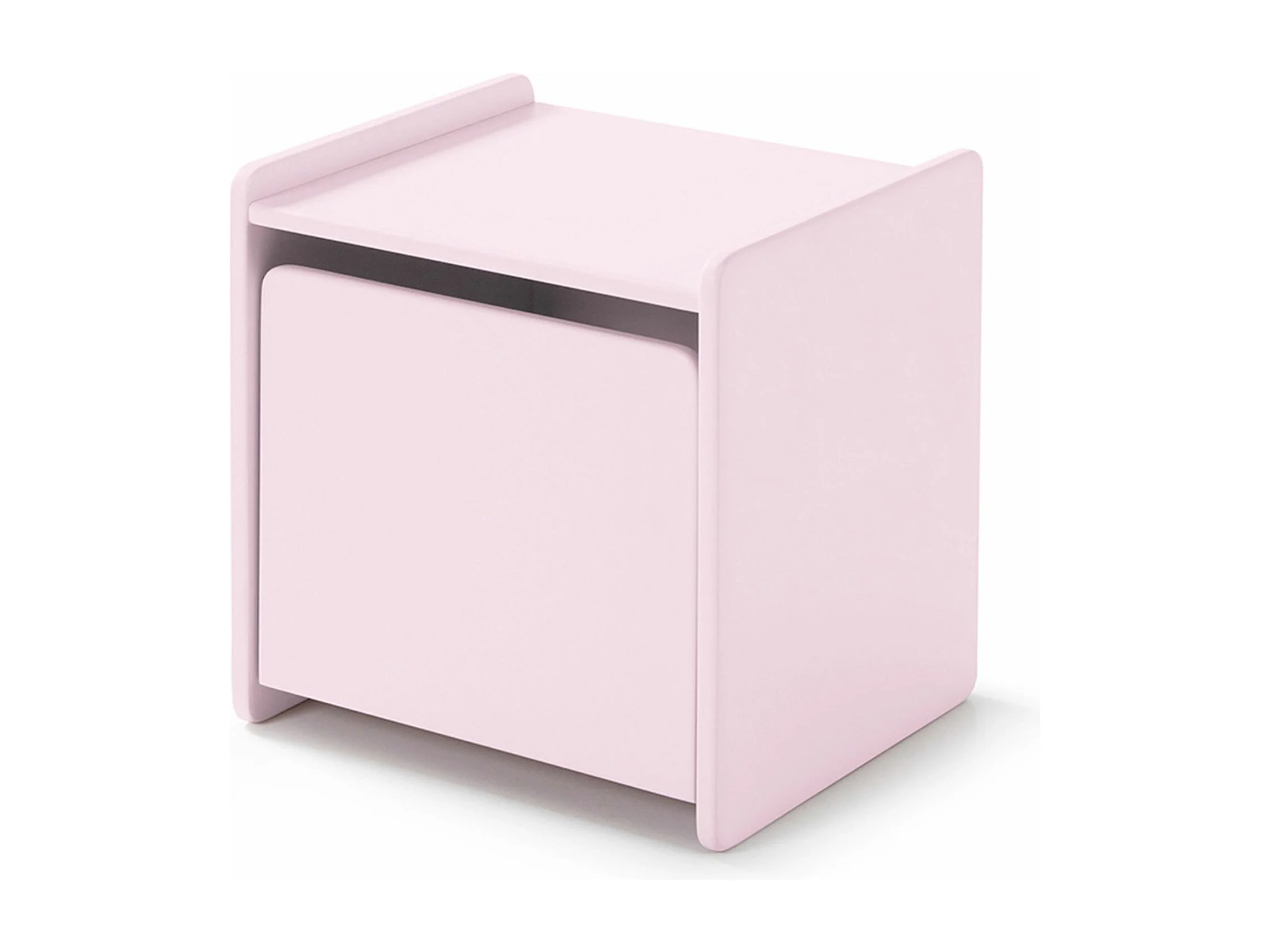 Table de chevet enfant décor bois rose 1 porte. pieds bois de pin - 34 x 23.5 x 52 cm - Azur
