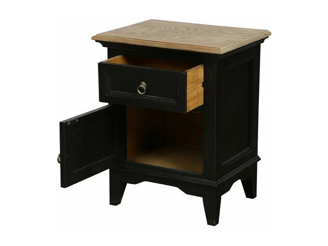 Table de chevet 1 tiroir 1 porte ouverture à gauche Bois Noir - Esquisse Interior's