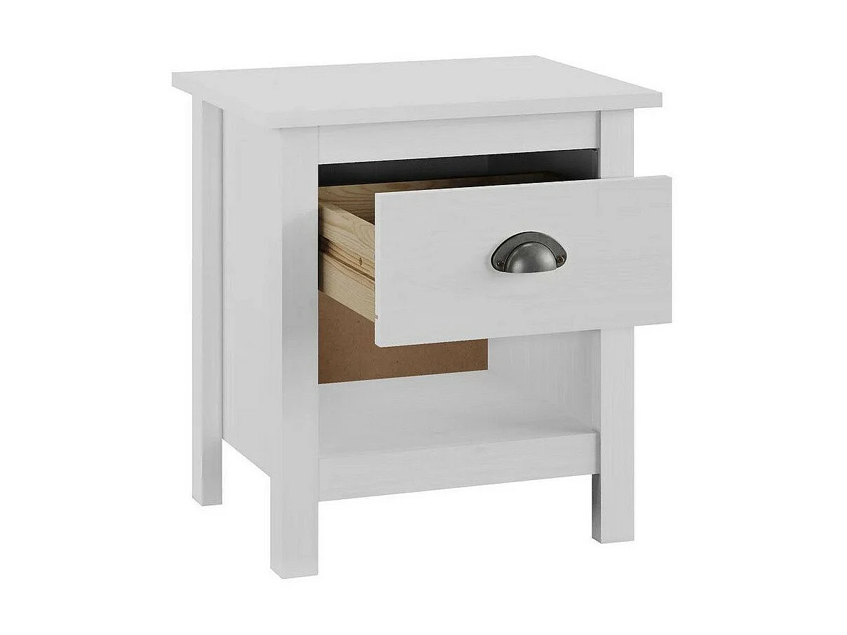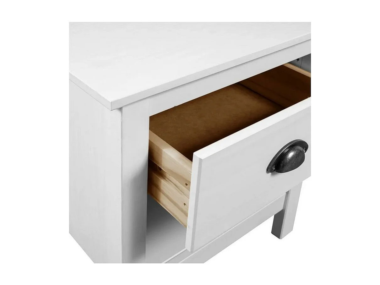 Chevet 1 tiroir pin massif blanc Berti - Lot de 2