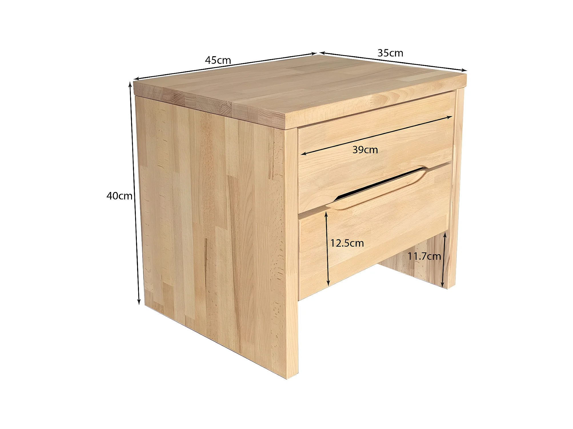 Chevet 2 tiroirs 35x45x40 cm/ Hêtre massif huilé