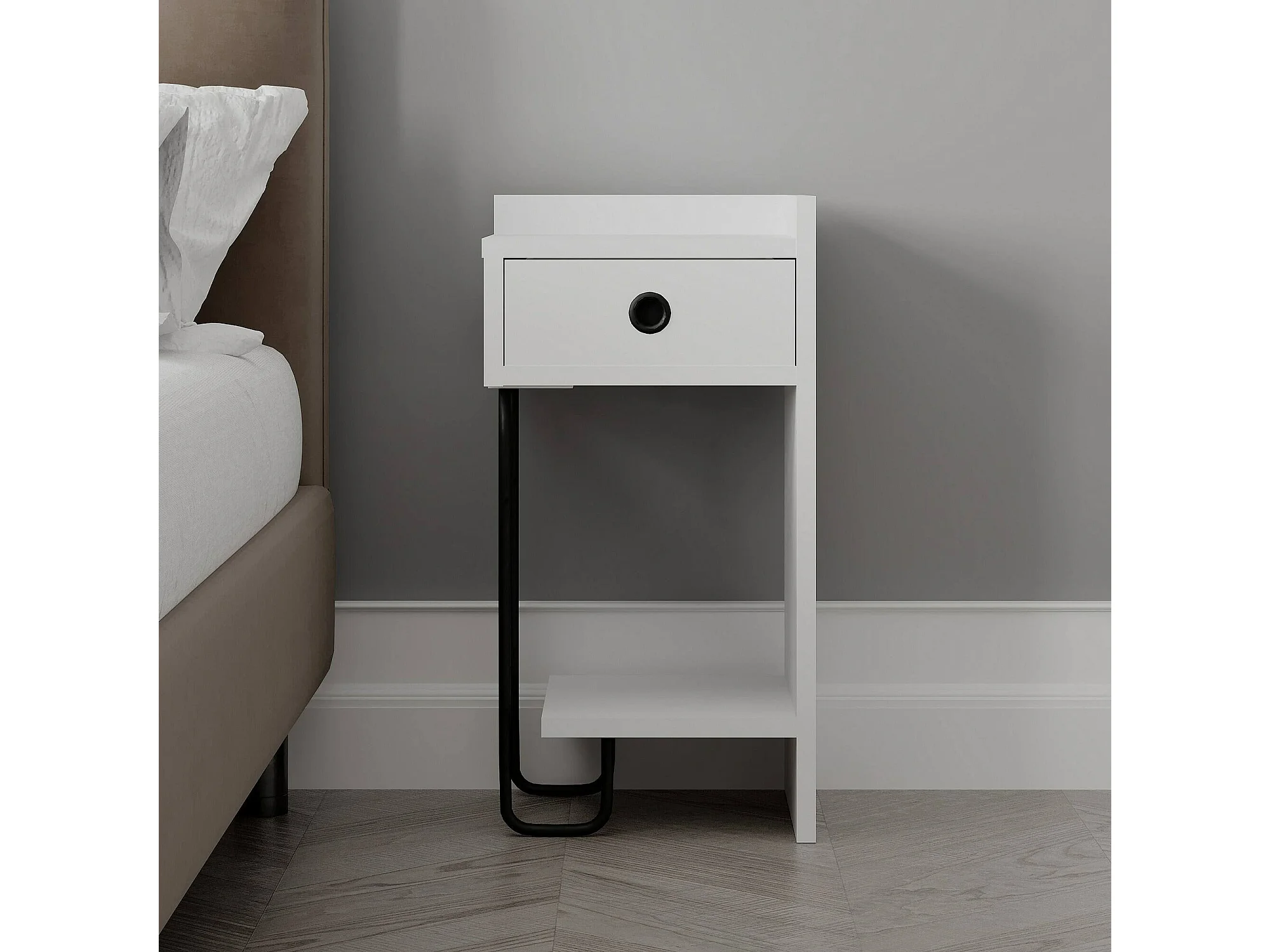 Chevet Dpodgorean, Commode basse, Table de nuit, Étagère de chevet, 32x30 h61 cm, Blanc