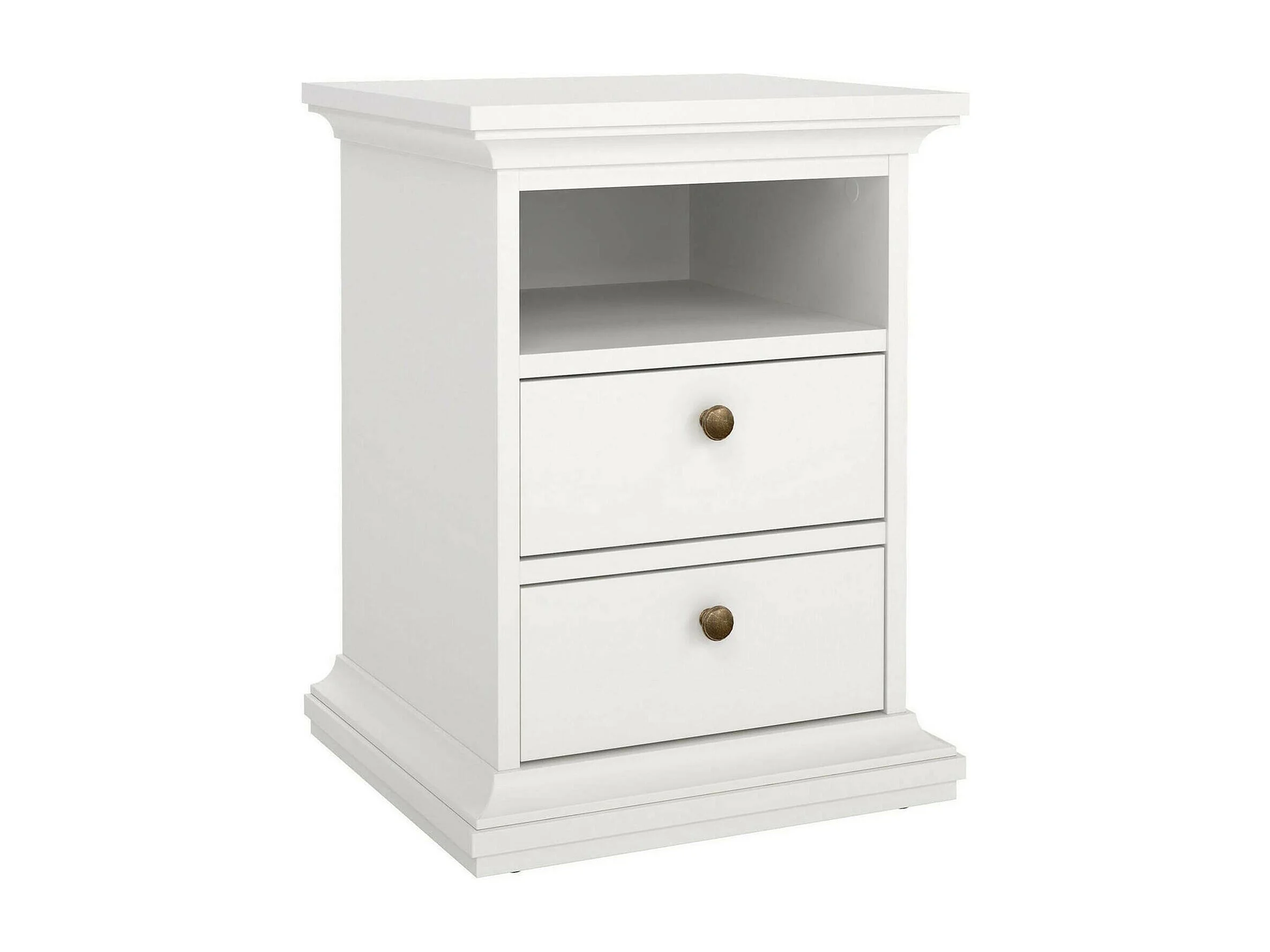 Chevet Drull, Commode basse, Table de nuit, Étagère de chevet, 44x38 h54 cm, Blanc