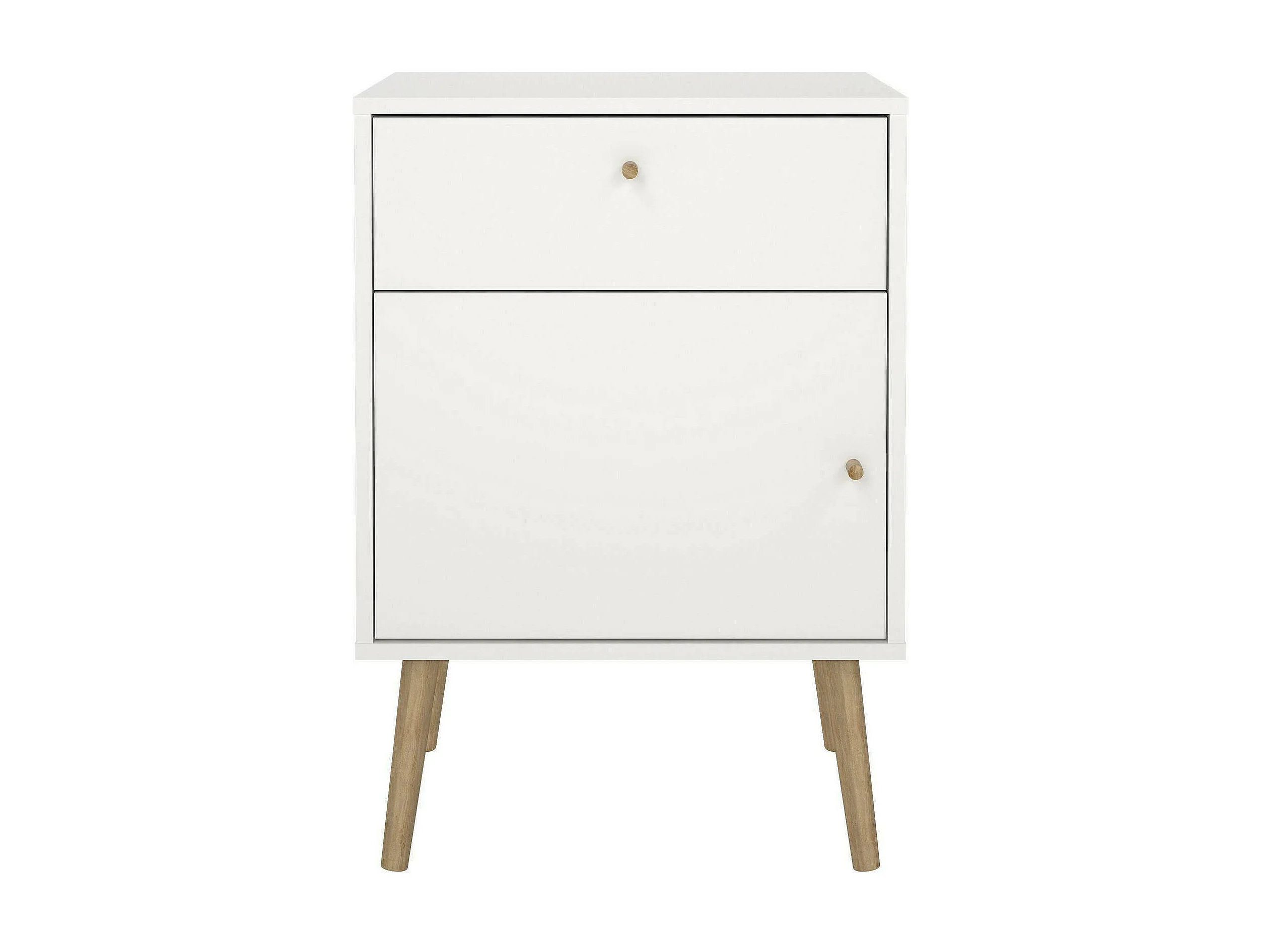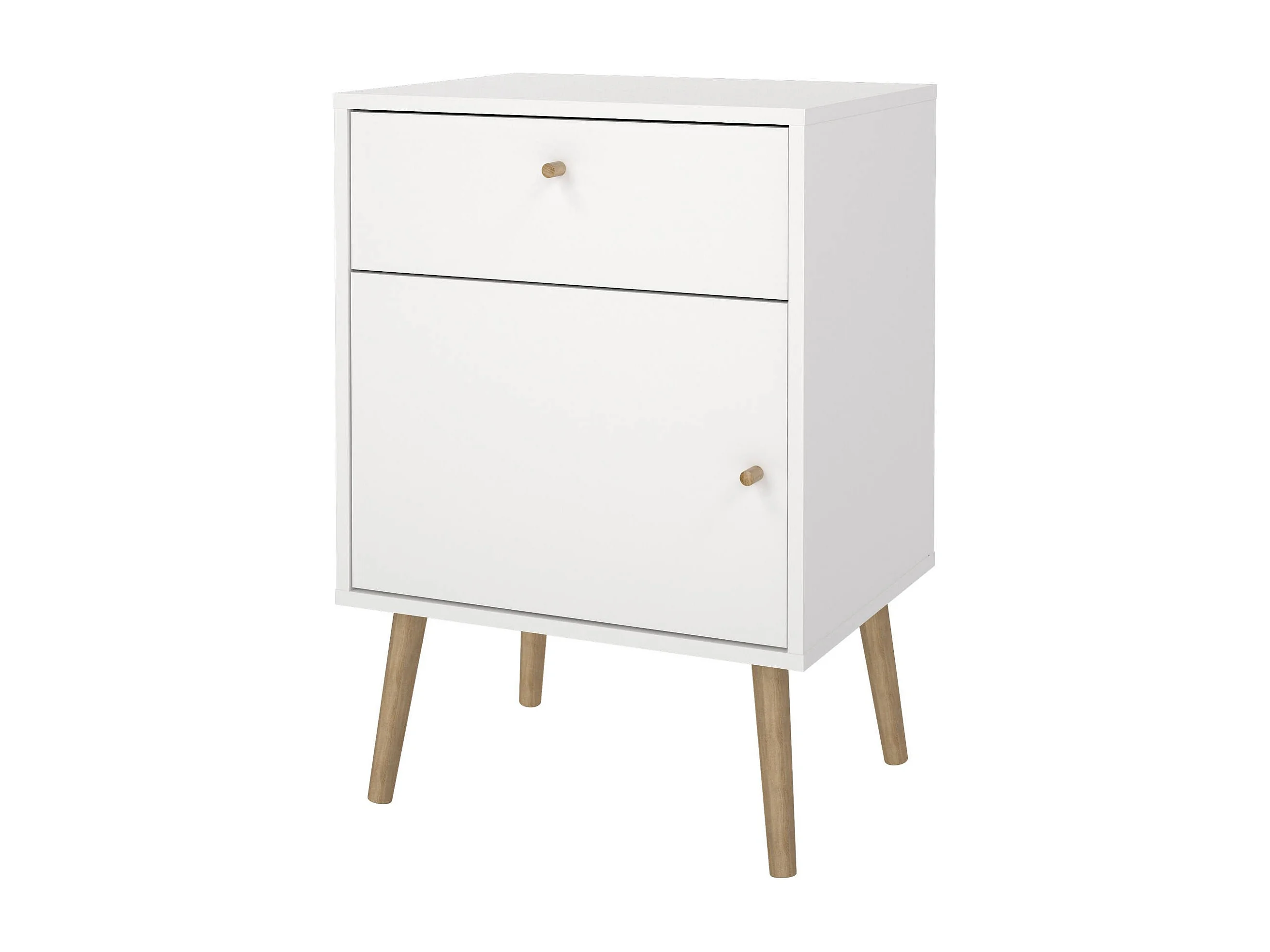 Table de chevet avec un tiroir et un compartiment de rangement, couleur blanc et chêne, Dimensions 50 x 49 x 39 cm