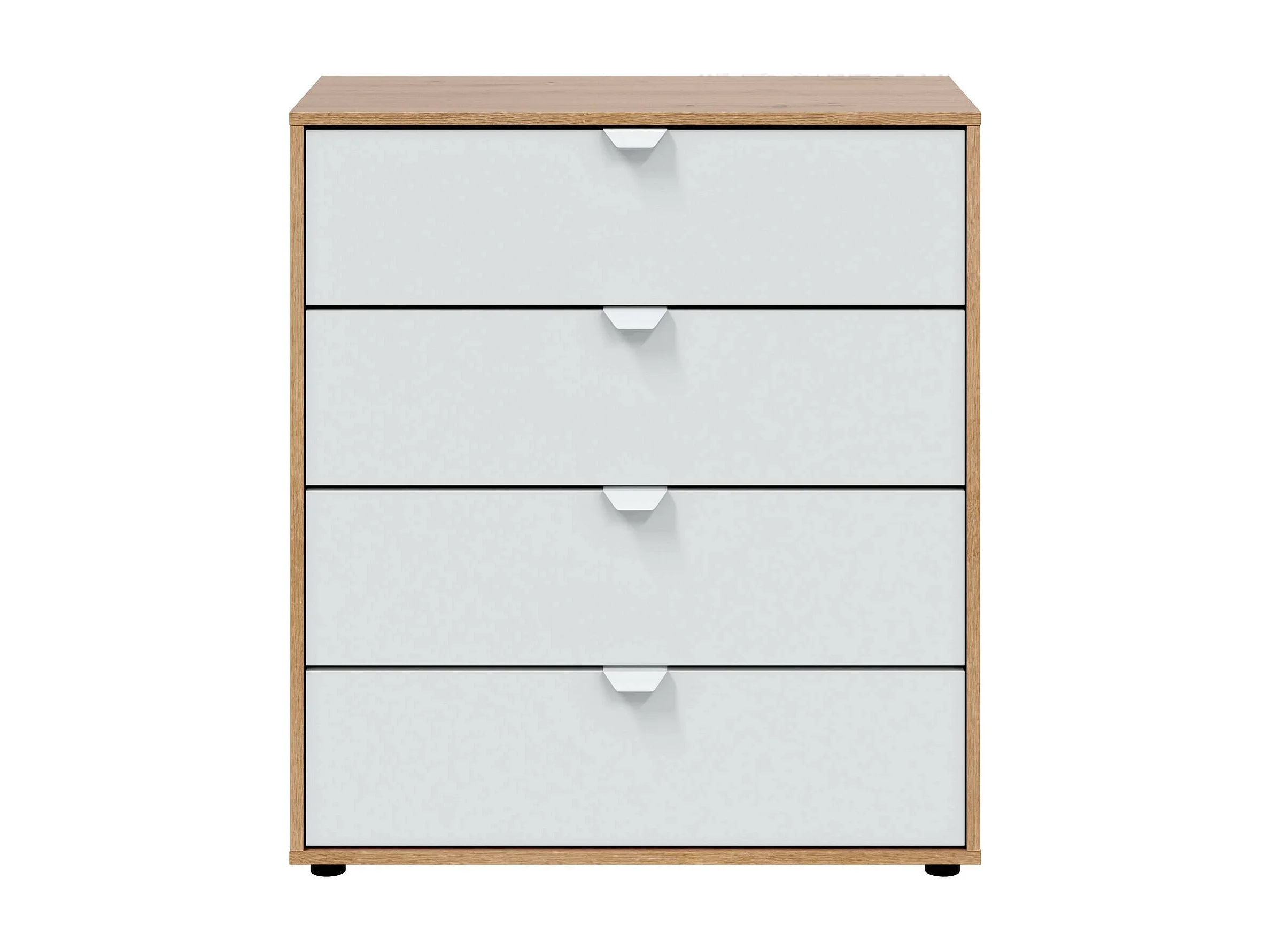 Chevet Dzigon, Commode basse, Table de nuit, Étagère de chevet, 78x40 h86 cm, Blanc et n?uds de chêne clair