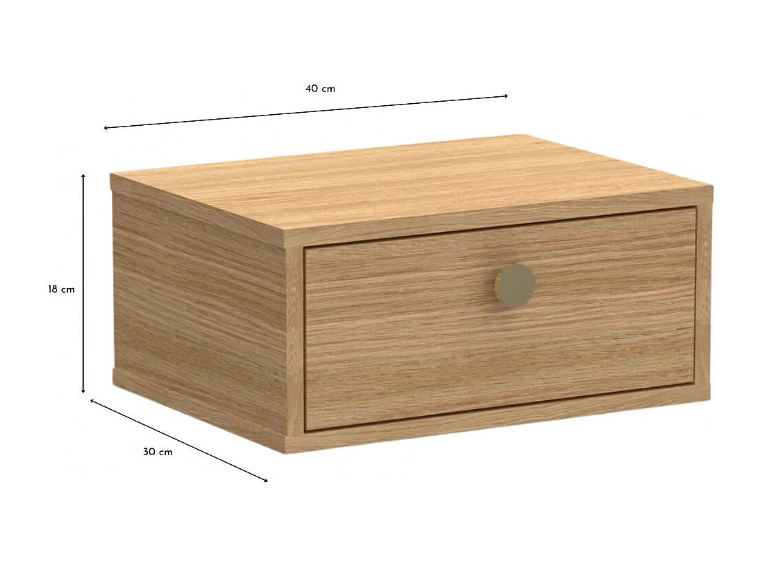 Table de chevet murale finition bois chêne clair avec tiroir NASTY