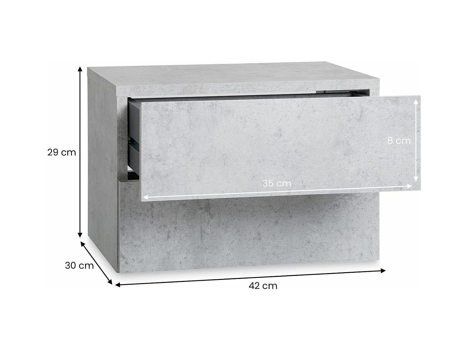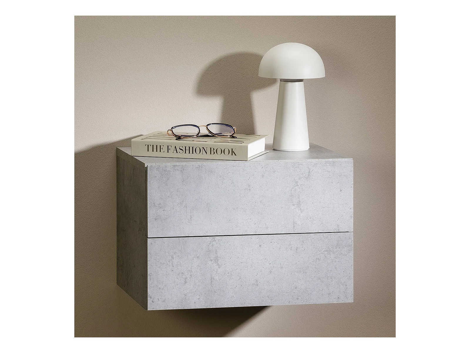 Chevet suspendu FLORENT, étagère murale avec 2 tiroirs sans poignée, en mélaminé décor béton