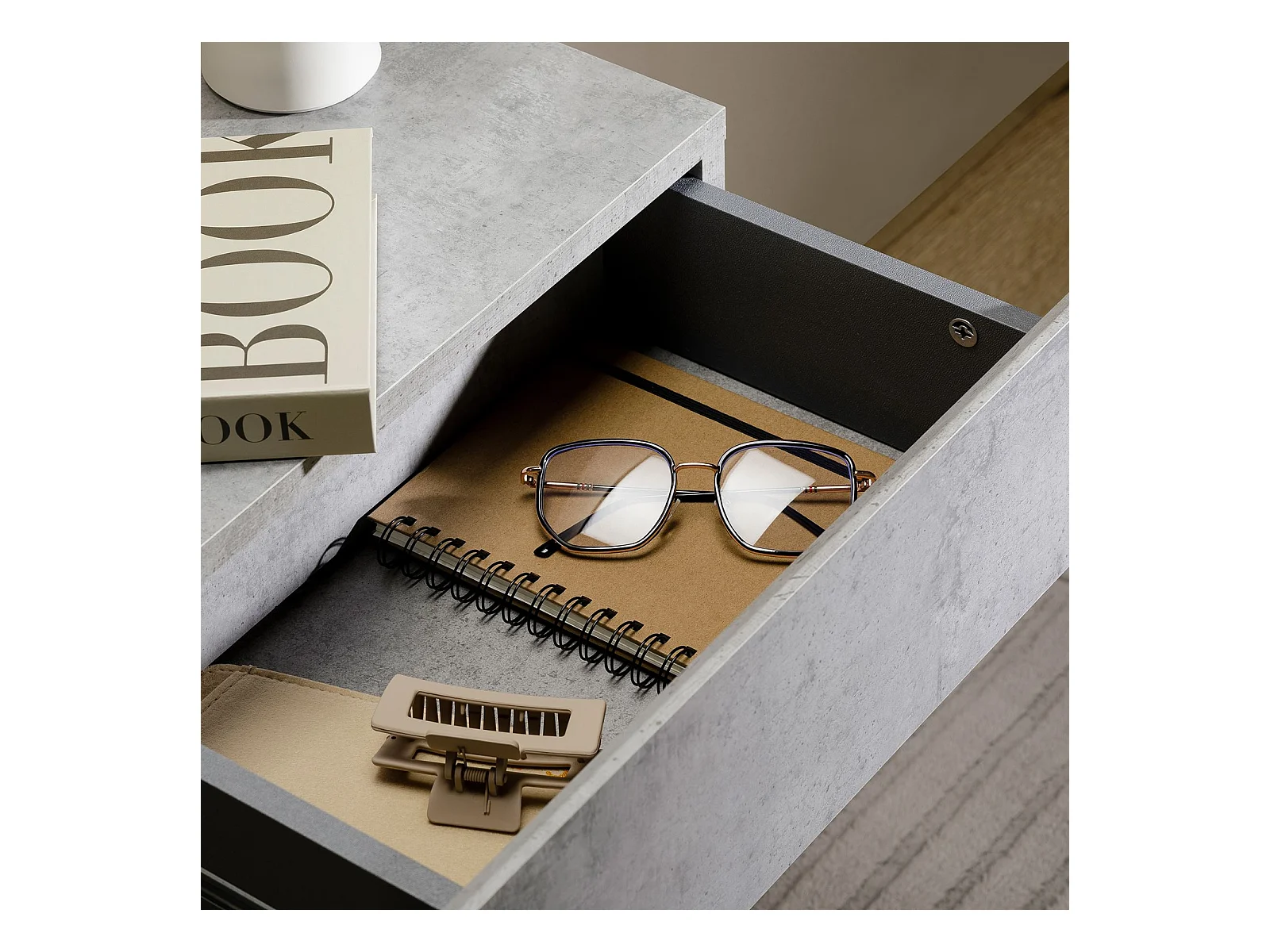 Table de chevet 4 tiroirs TARBES table de nuit haute, design moderne, en mélaminé imitation béton et blanc