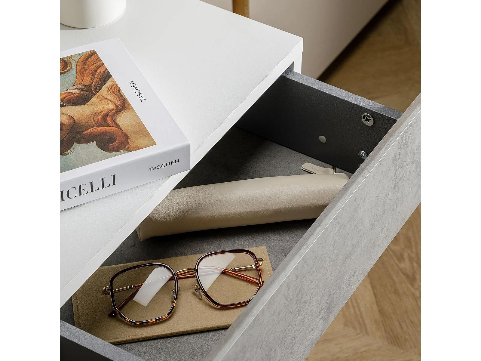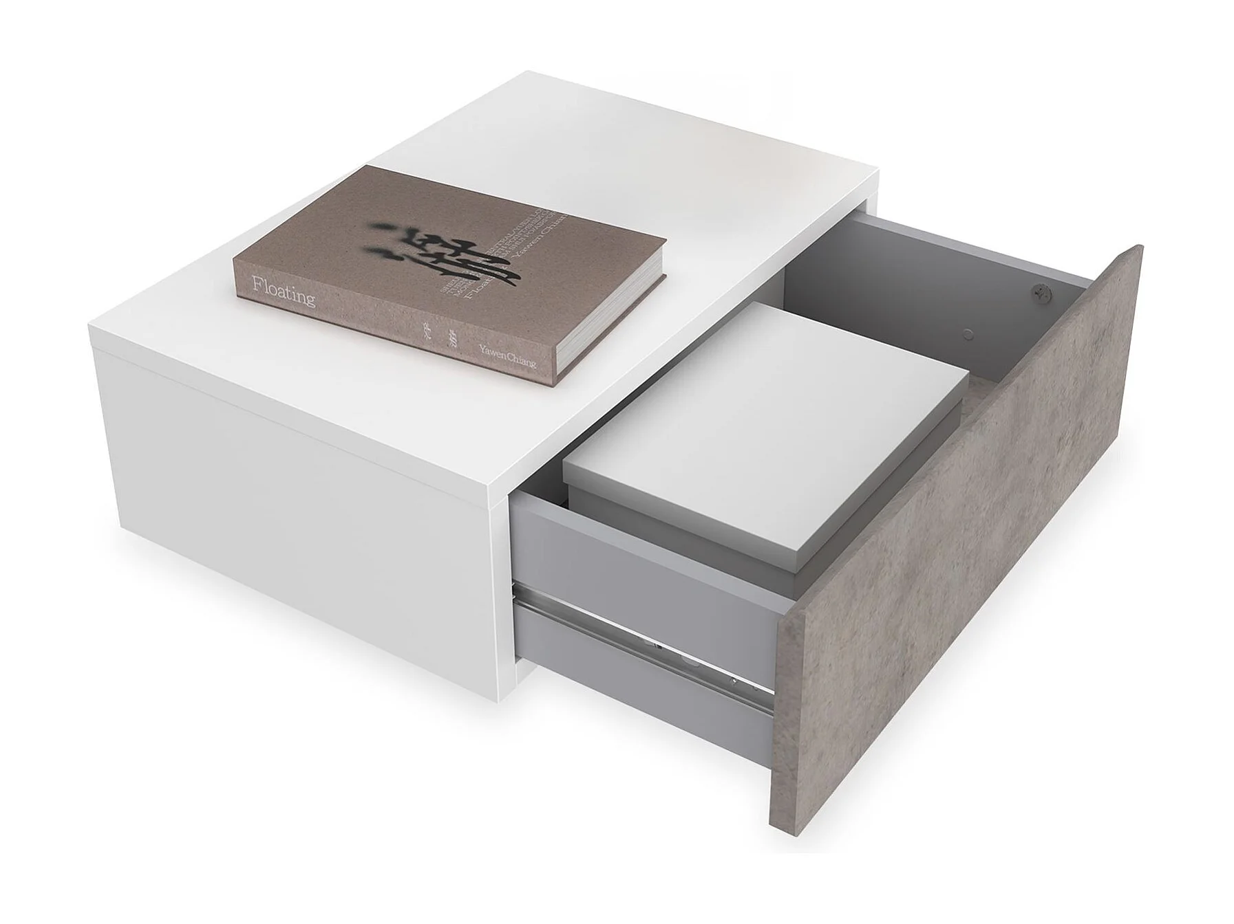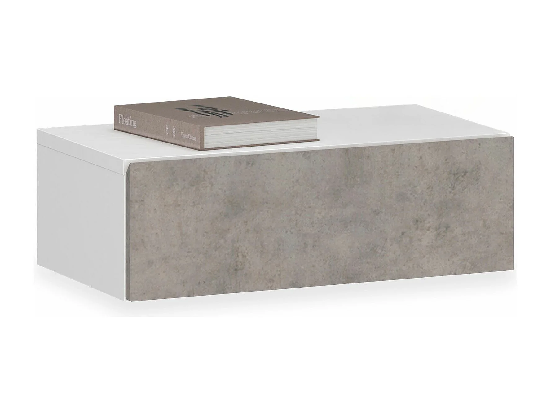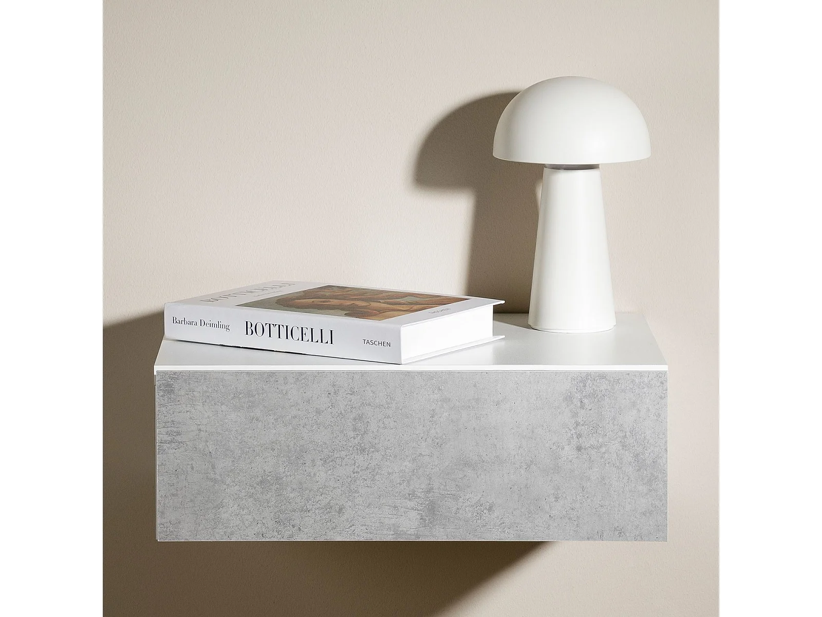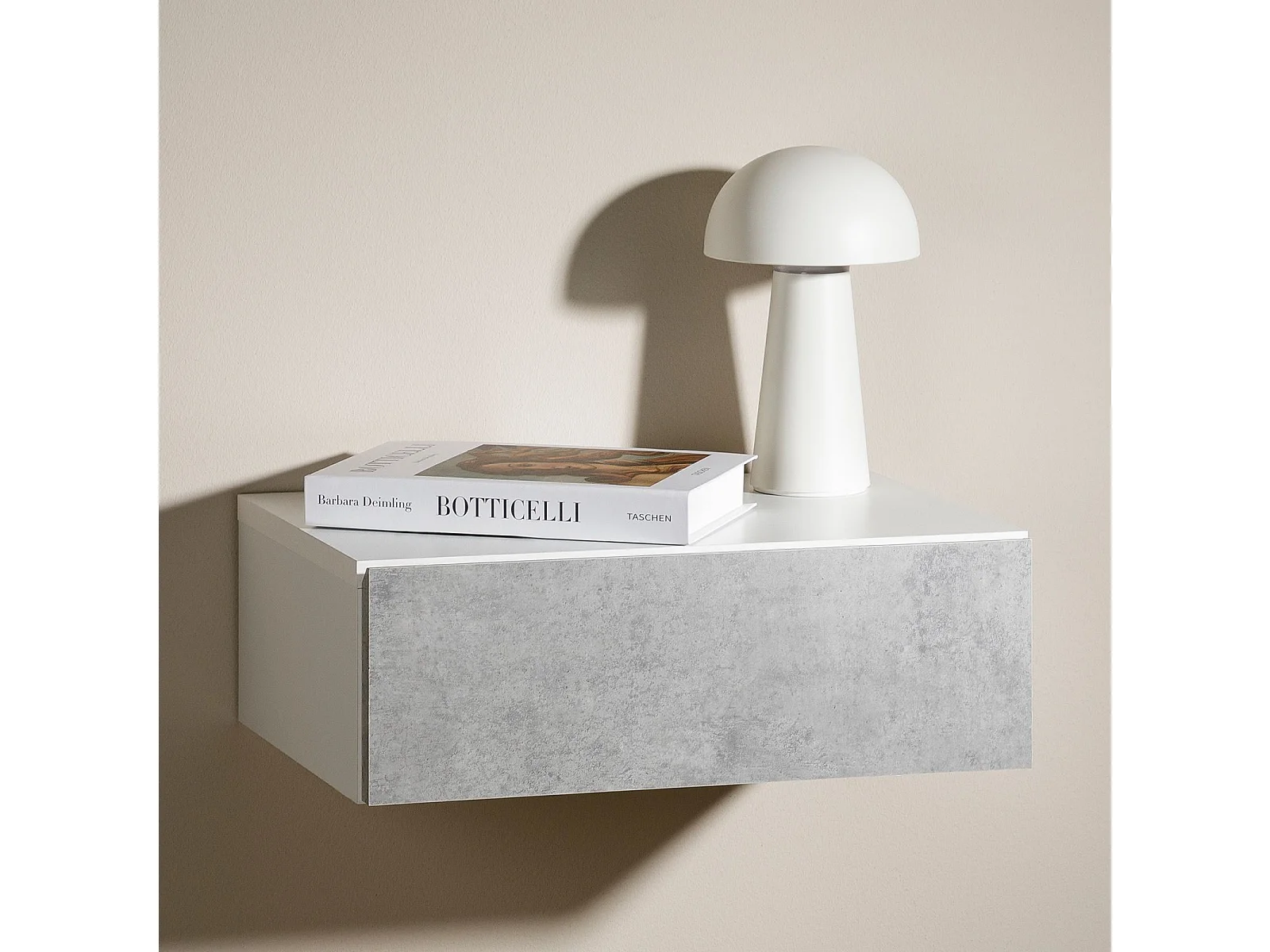 Chevet suspendu OCEANE, en bois blanc et béton étagère murale avec 1 tiroir sans poignée