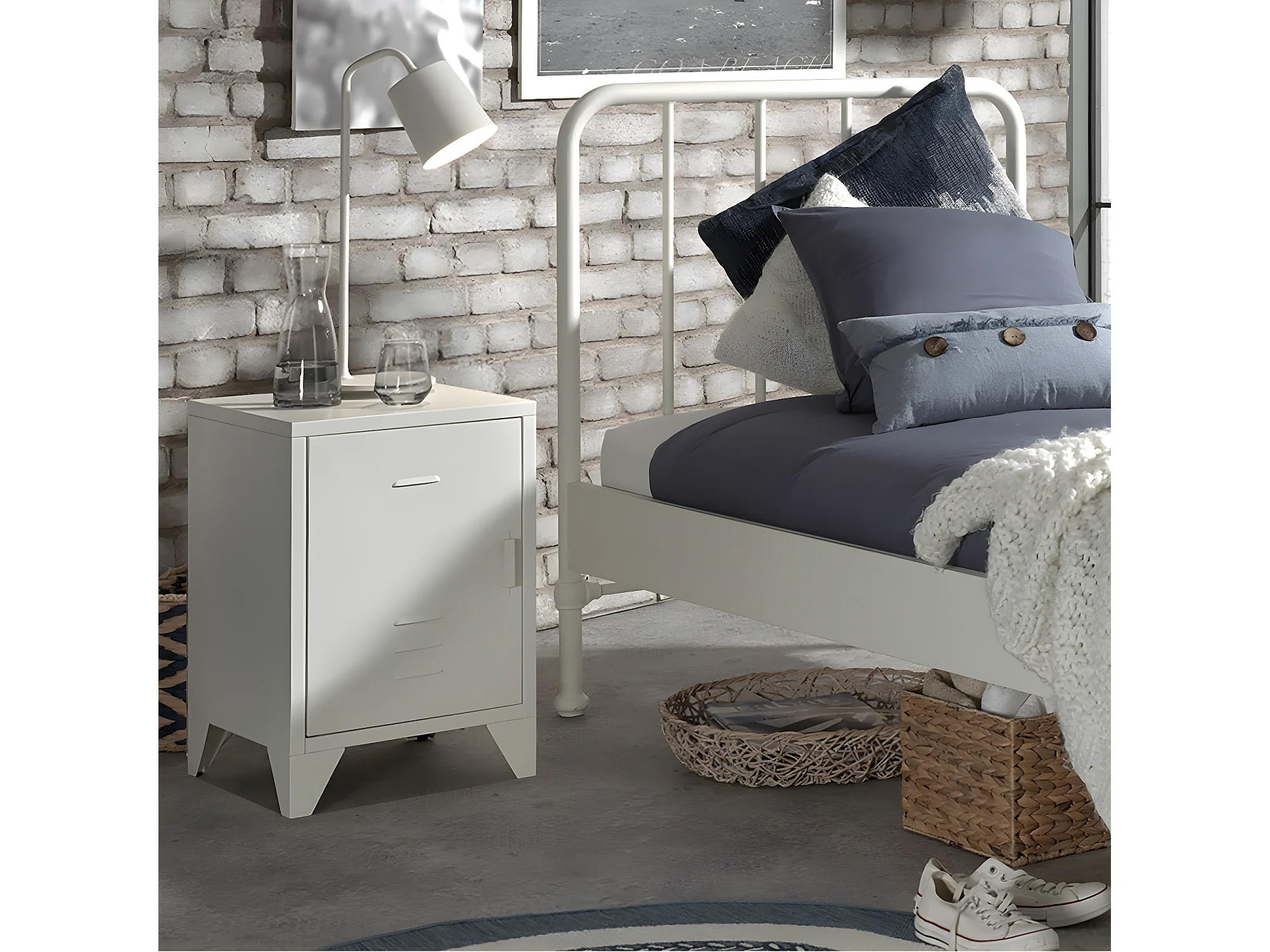 CHICAGO - Chevet 1 Porte Style Casier Industriel Métal Blanc