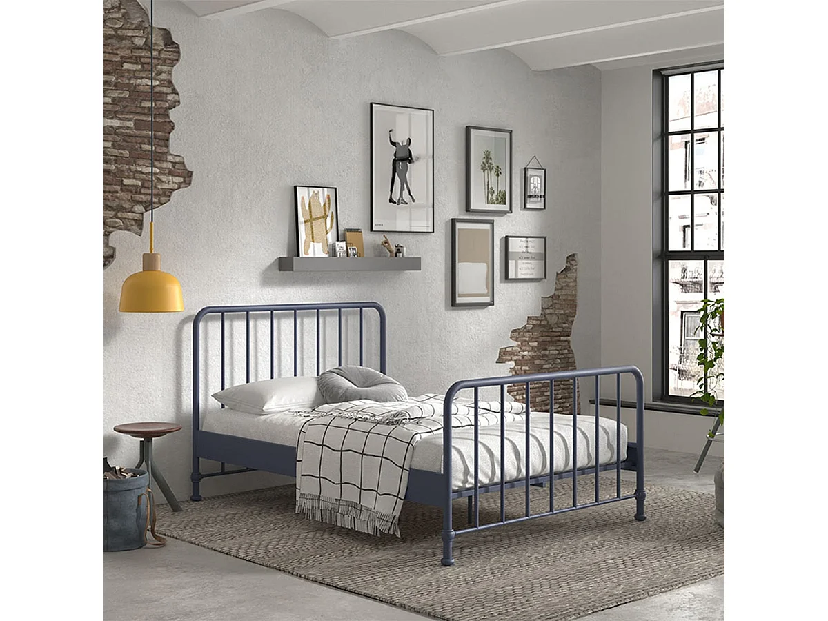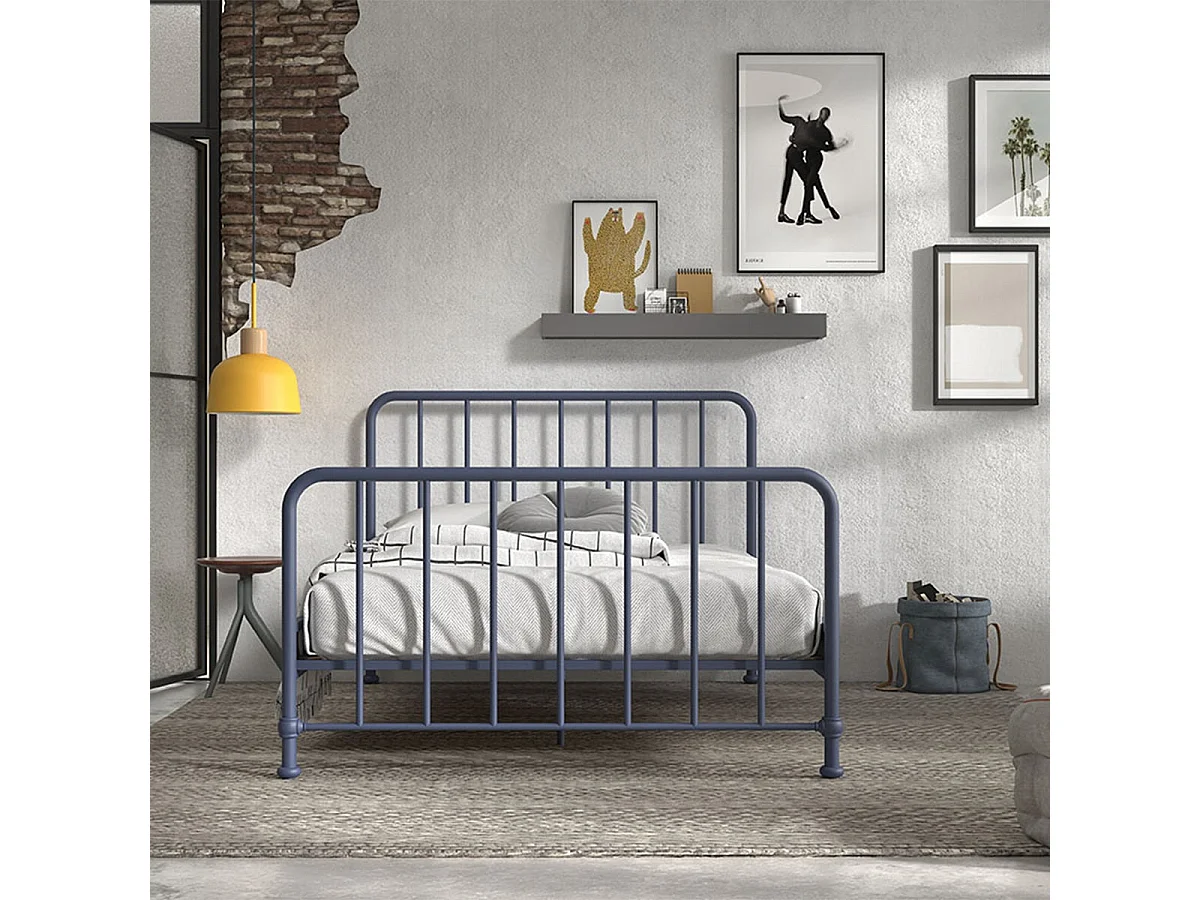 CHICAGO - Lit à Barreaux 140x200cm Métal Poudré Bleu