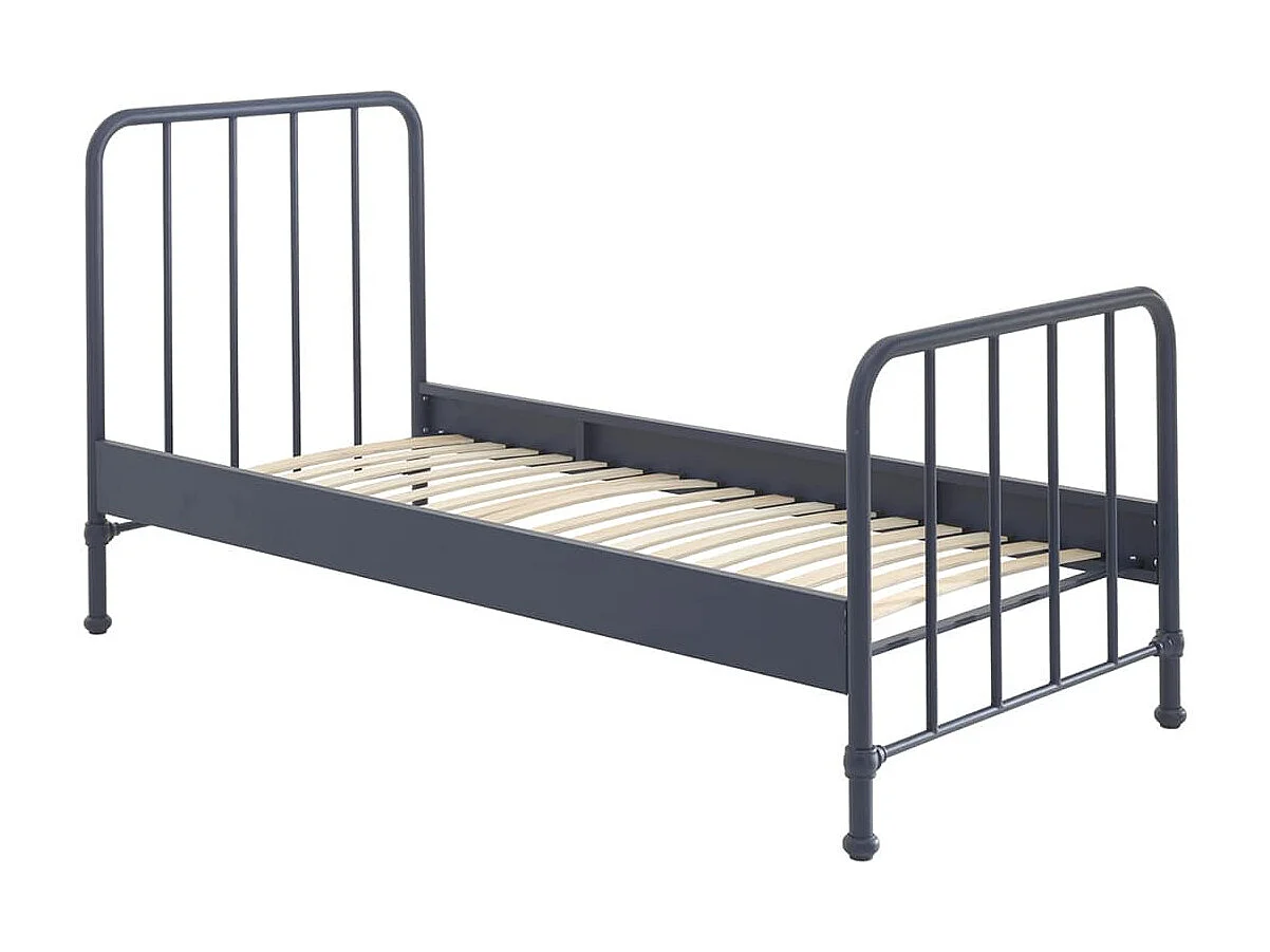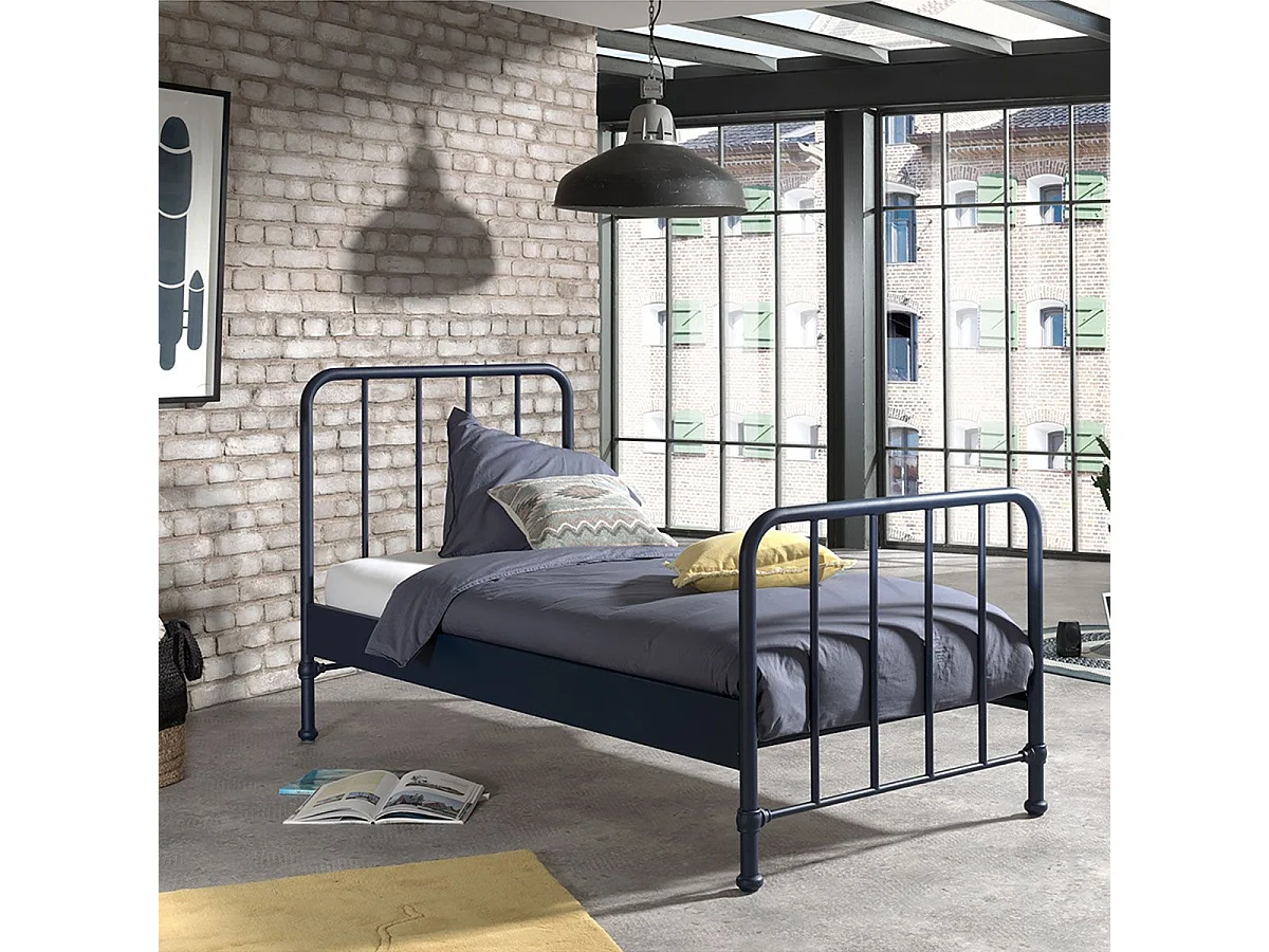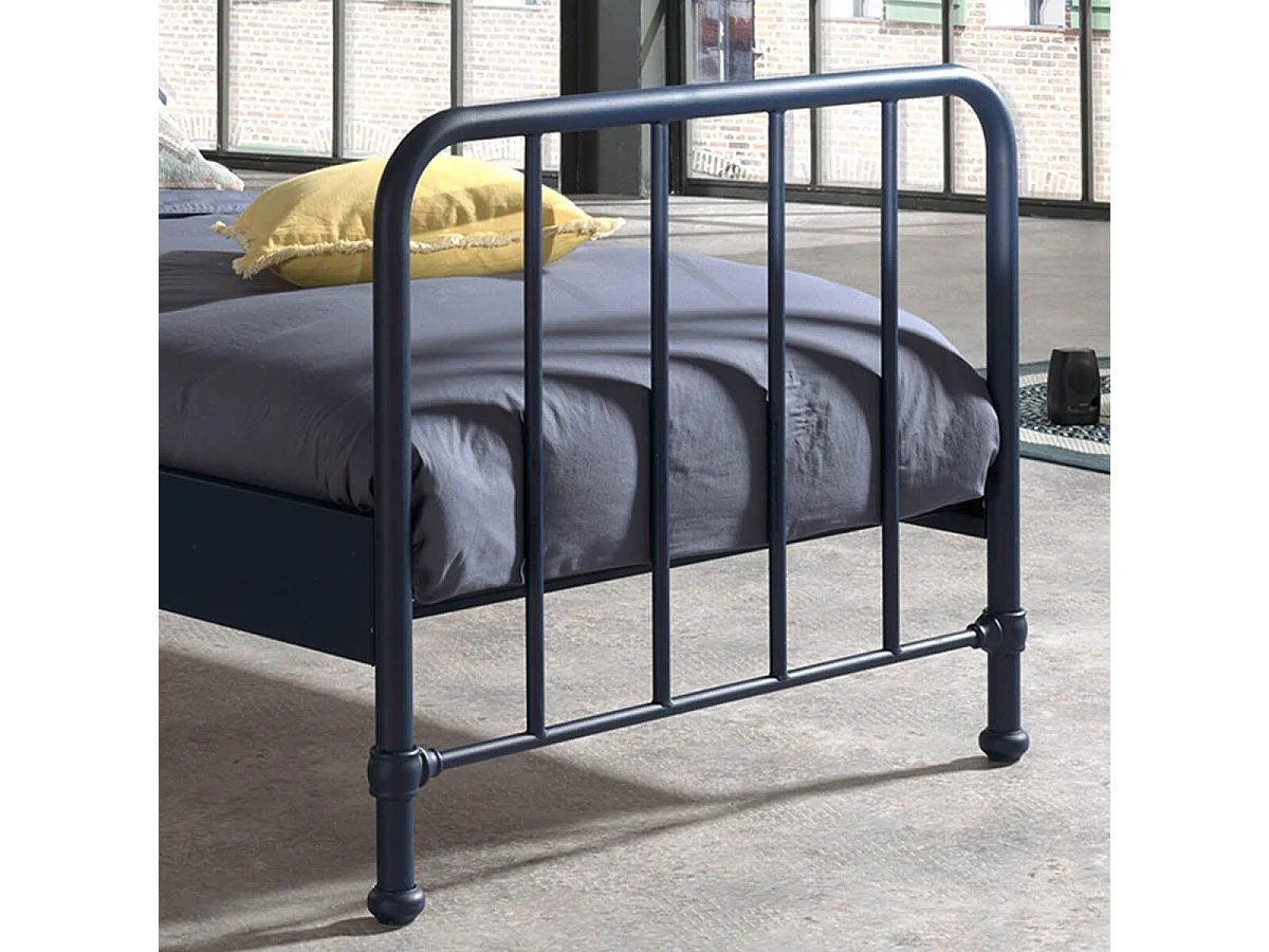 CHICAGO - Lit à Barreaux 90x200cm Métal Poudré Bleu