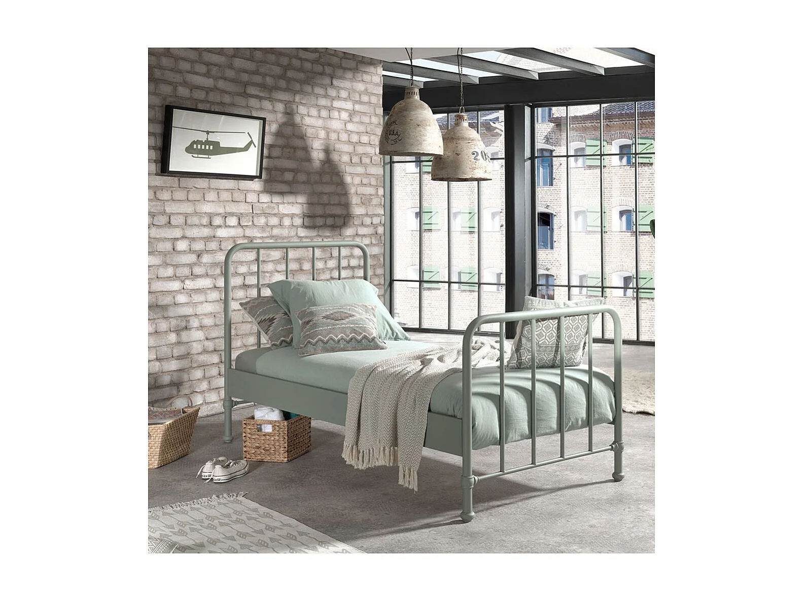CHICAGO - Lit à Barreaux 90x200cm Métal Poudré Vert Olive
