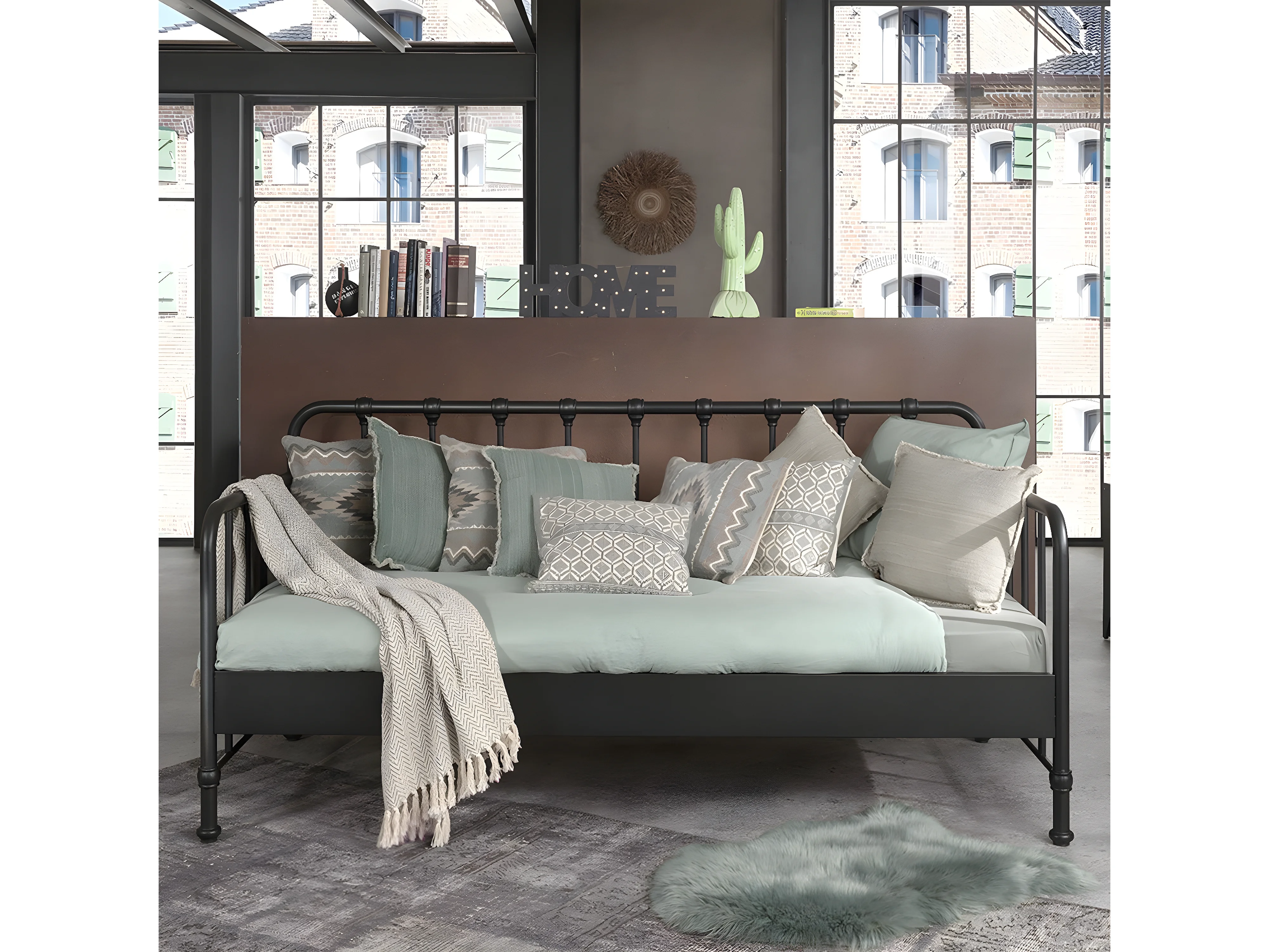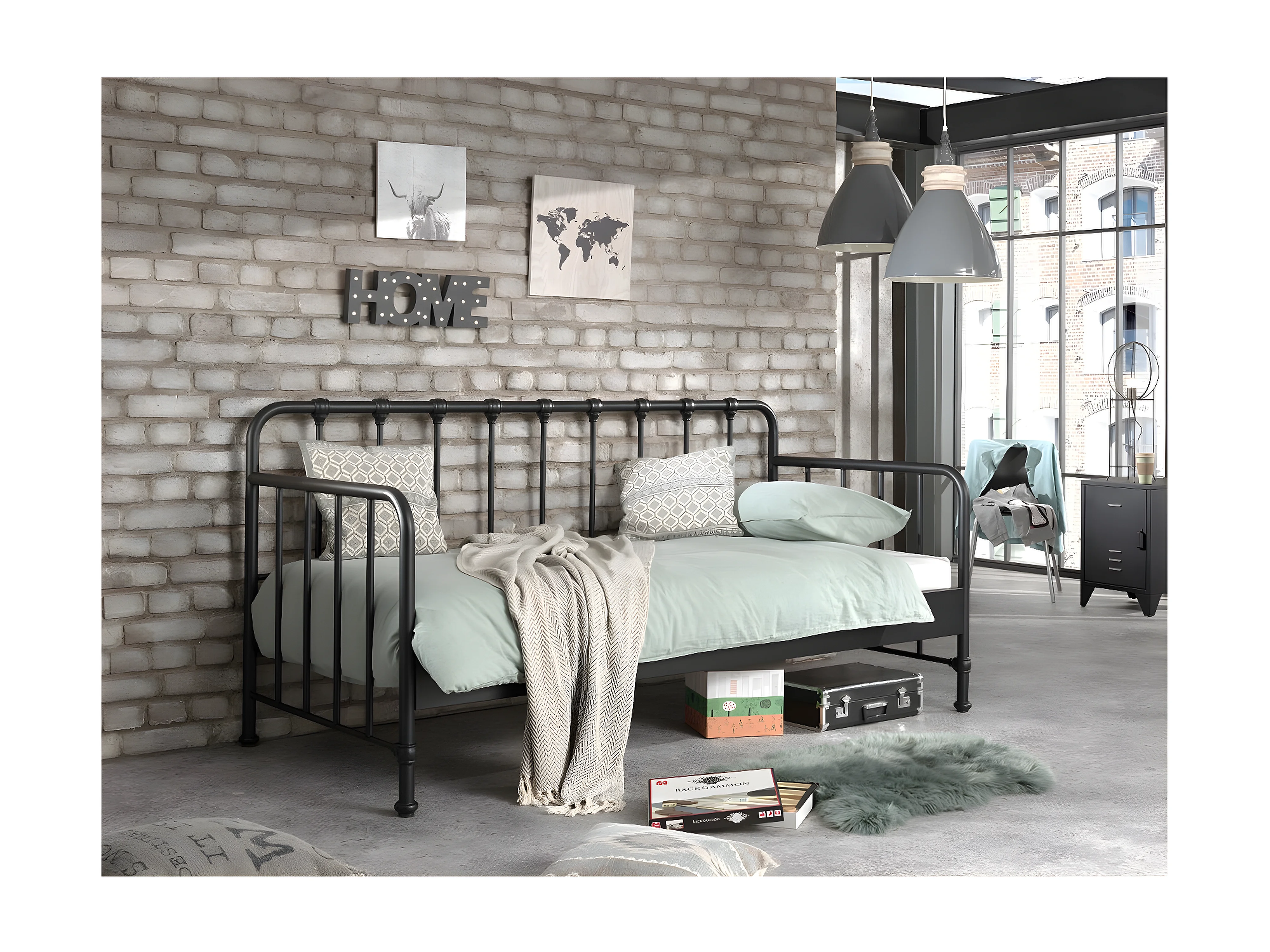 CHICAGO - Lit Banquette à Barreaux 90x200cm Métal Noir