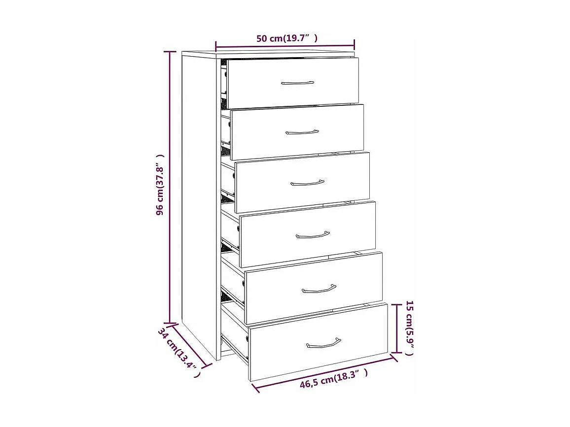 Chiffonnier avec 6 tiroirs vieux bois 50x34x96 bois d'ingénierie