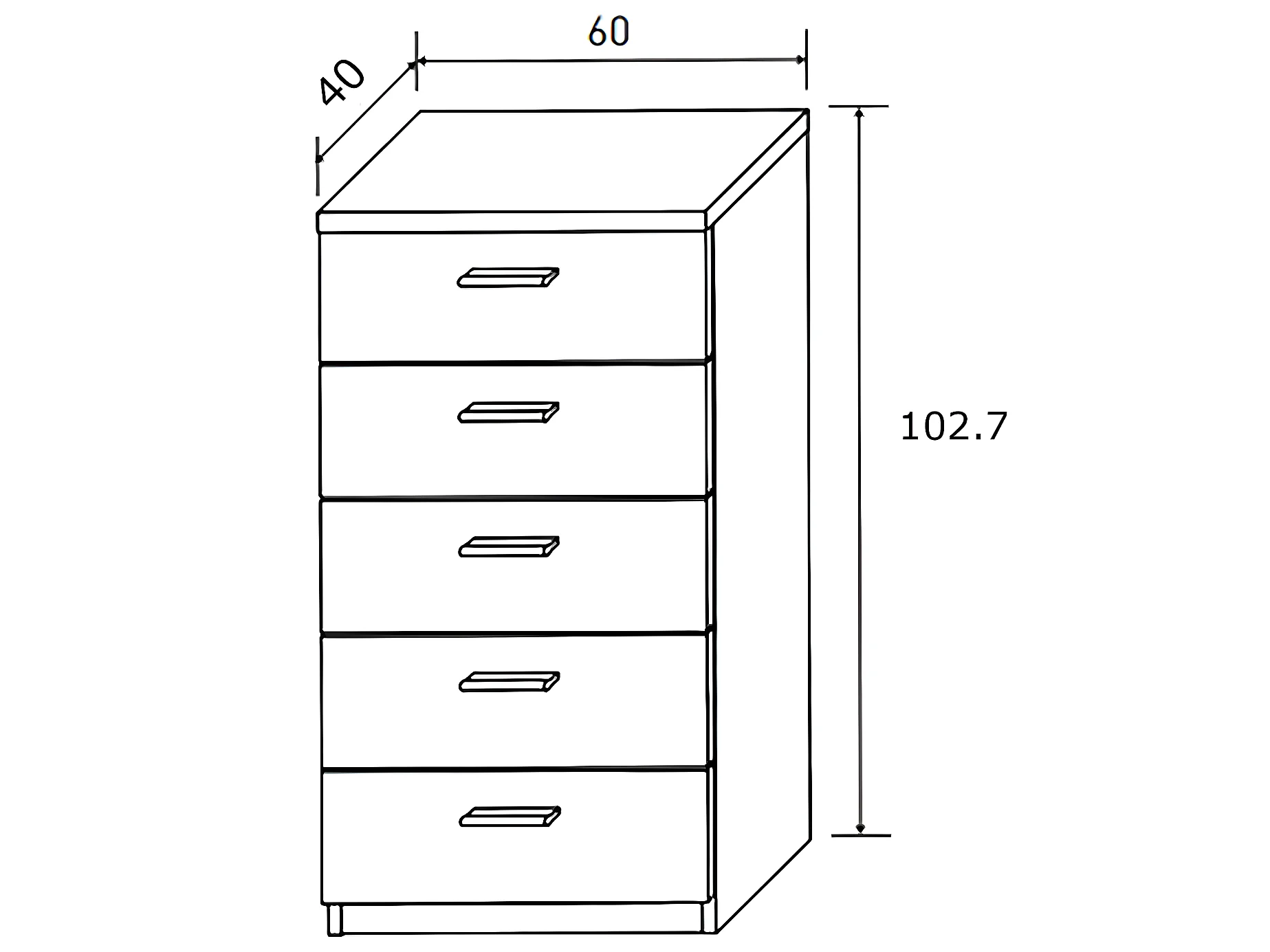 Chiffonnier avec 5 tiroirs coloris chêne cambrian/blanc - Longueur 60 x profondeur 40 x hauteur 102,7 cm