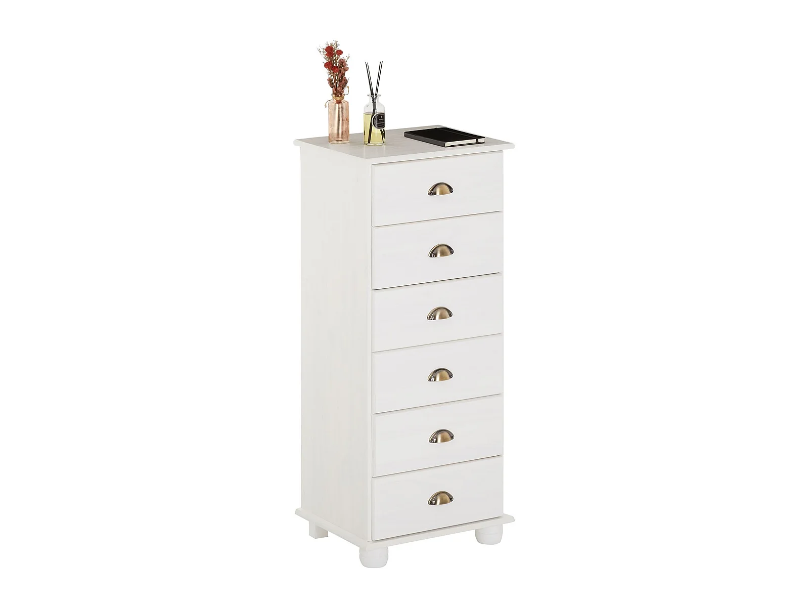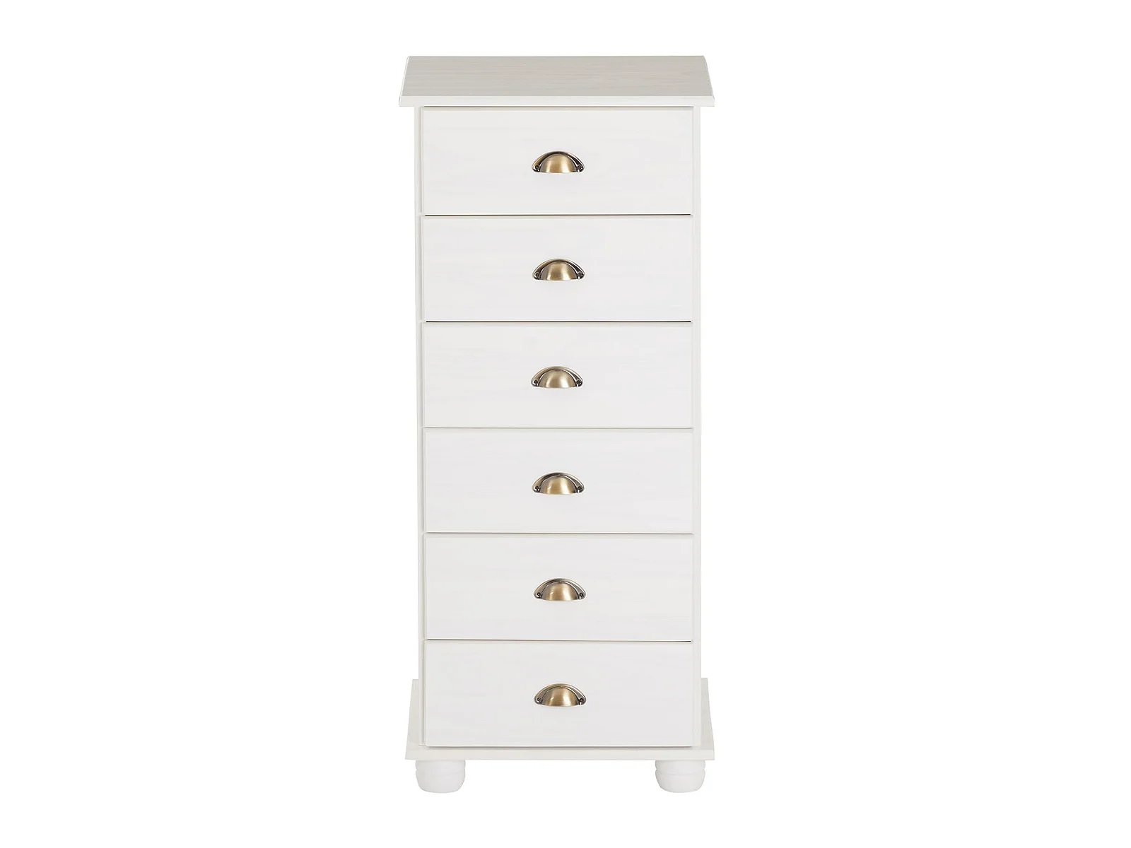 Chiffonnier COLMAR commode apothicaire avec 6 tiroirs de rangement, en pin massif lasuré blanc