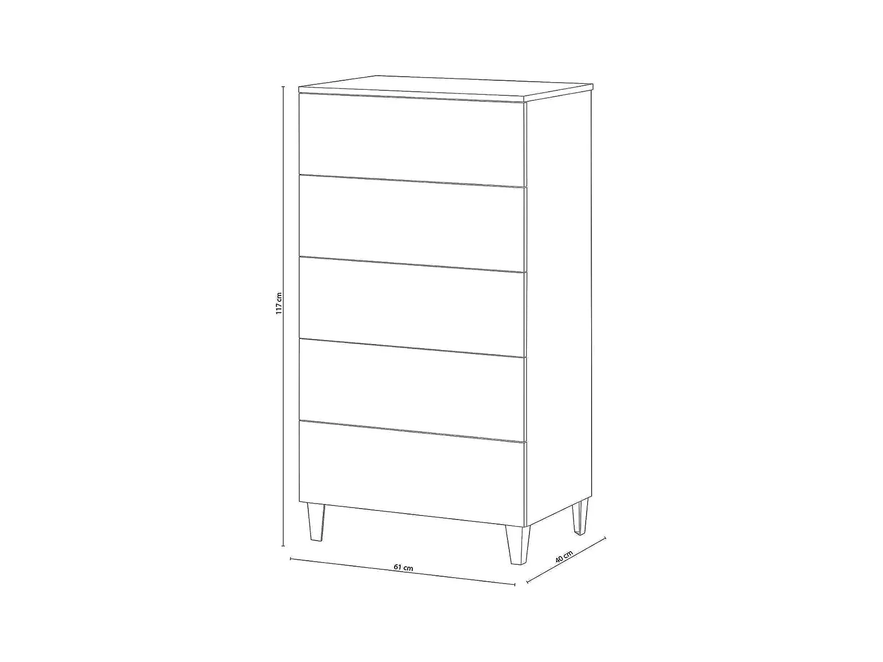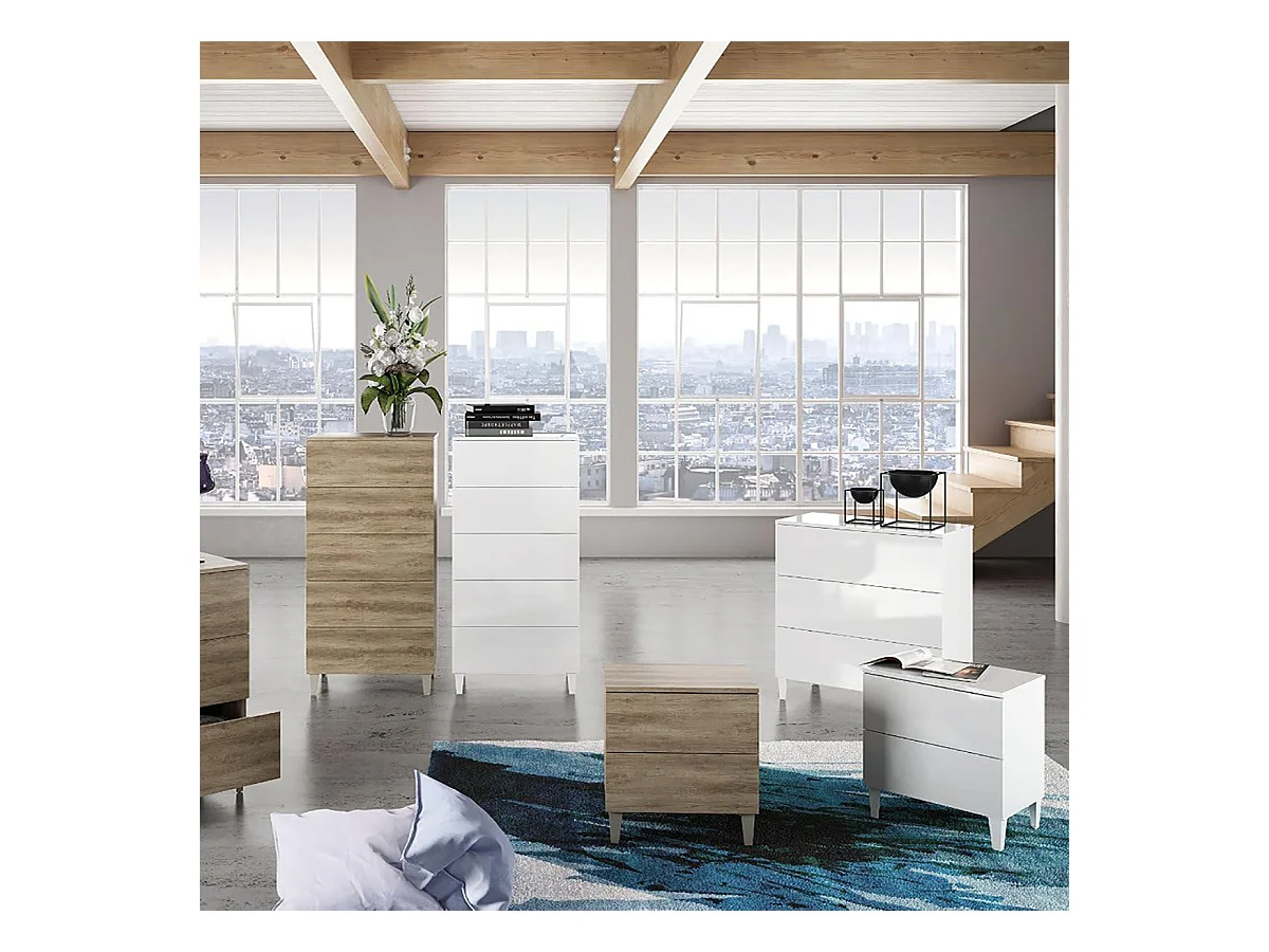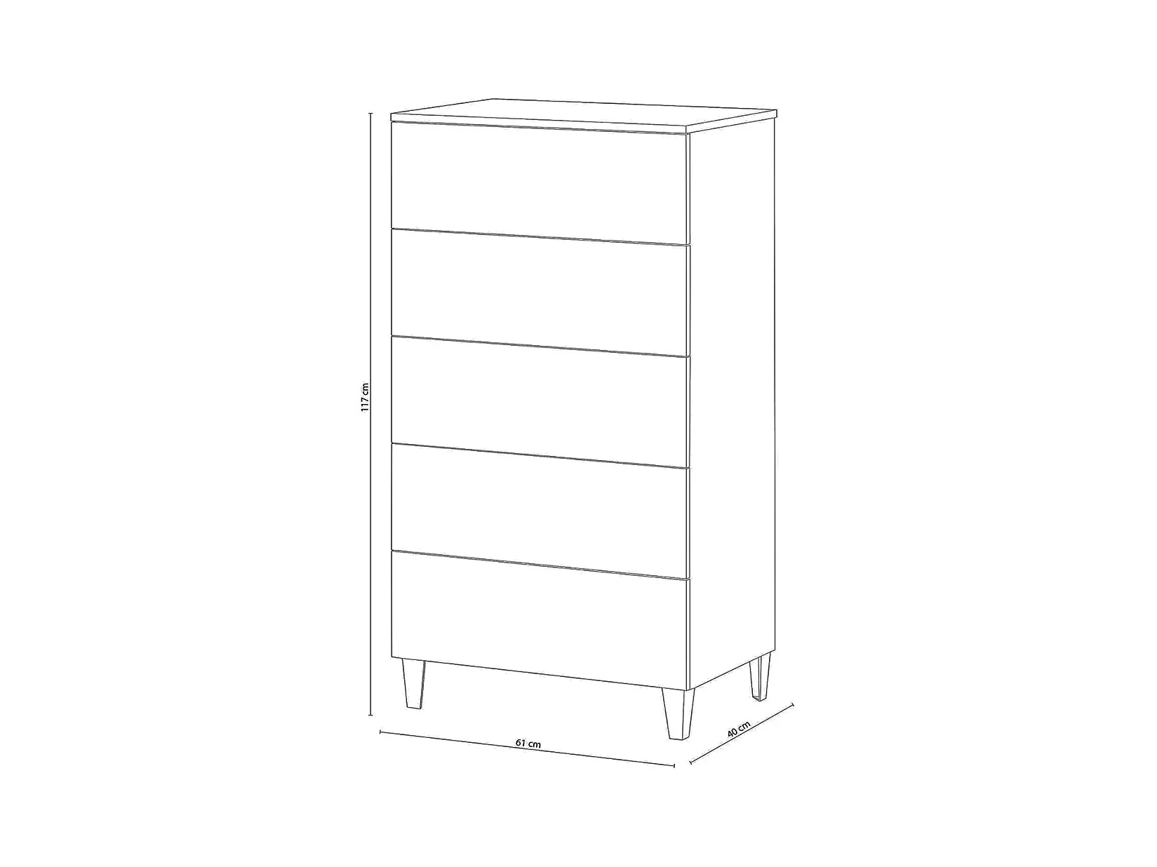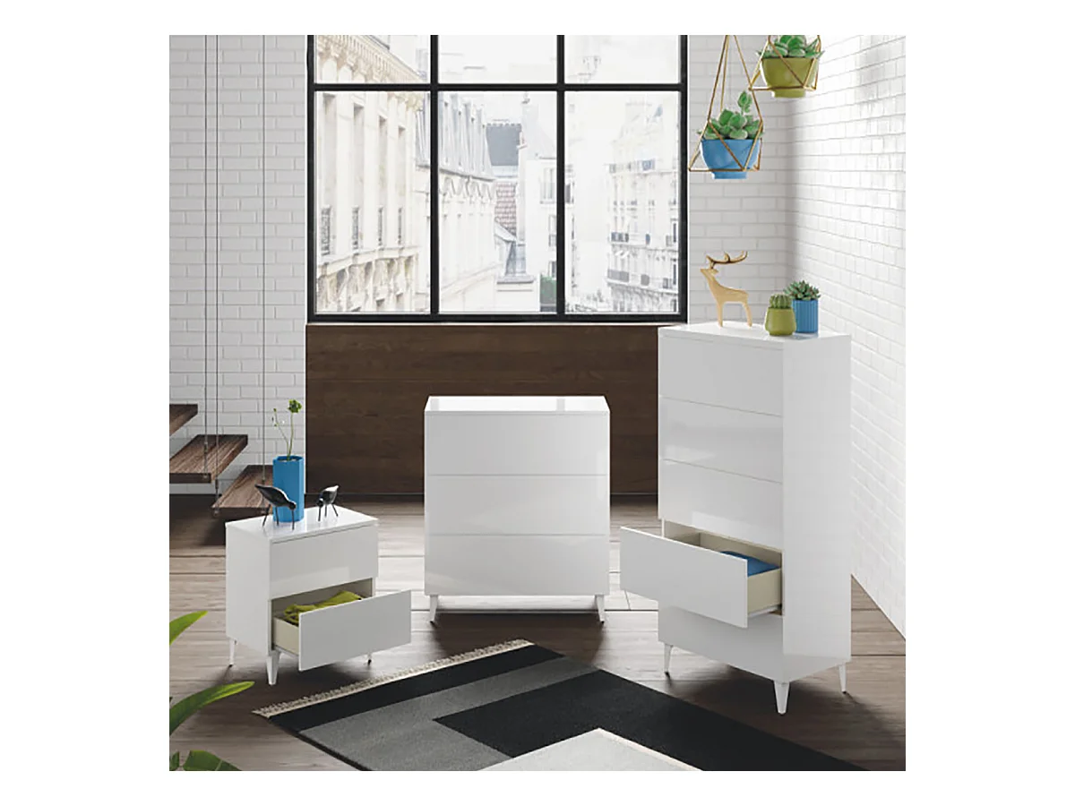 Chiffonnier en bois couleur blanc brillant avec 5 tiroirs - Longueur 61 x Hauteur 117 x Profondeur 40 cm