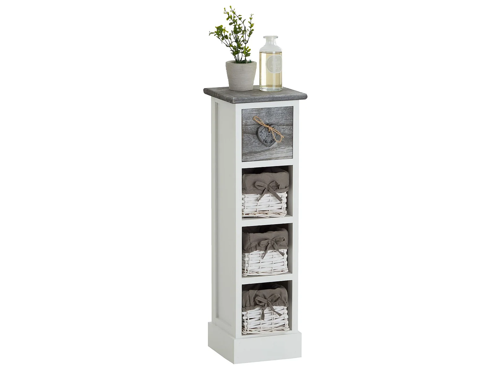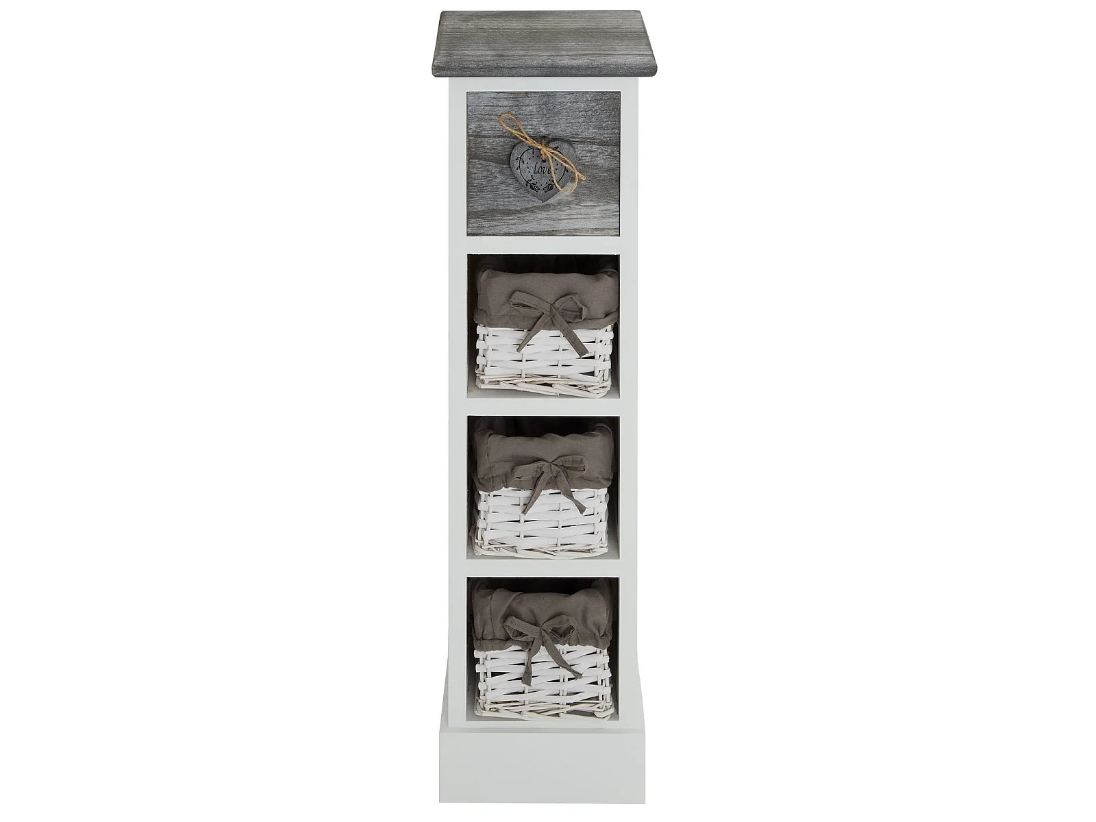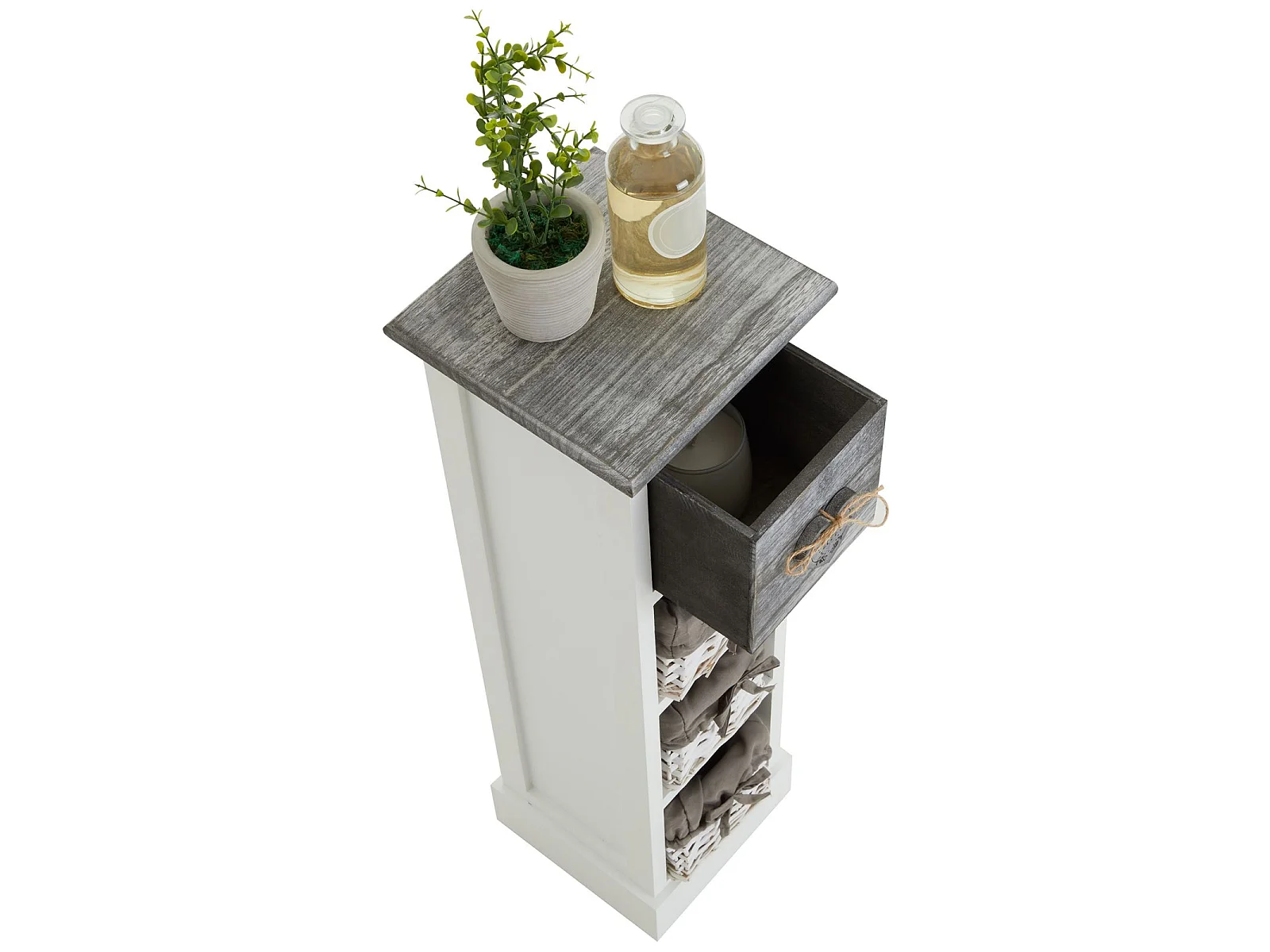 Chiffonnier FLOWER petit meuble avec 1 tiroir et 3 paniers étagère en bois de paulownia blanc et gris style shabby chic