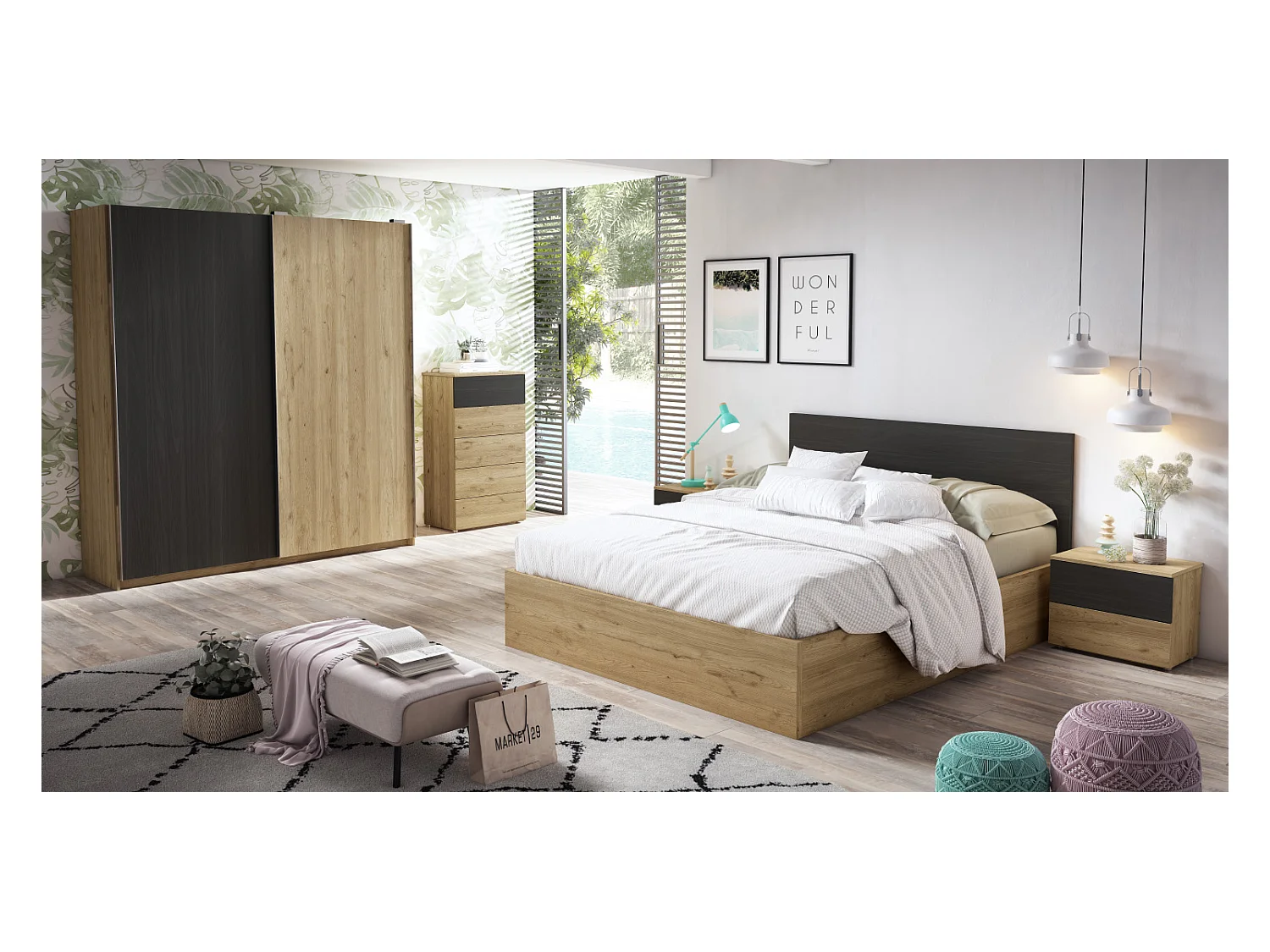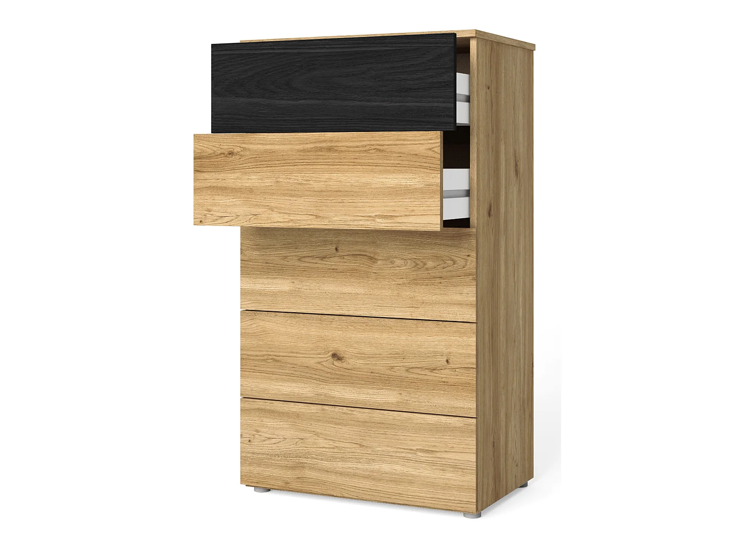 Chiffonnier, meuble de rangement coloris naturel, noir - Longueur 62 x Profondeur 40 x Hauteur 111 cm