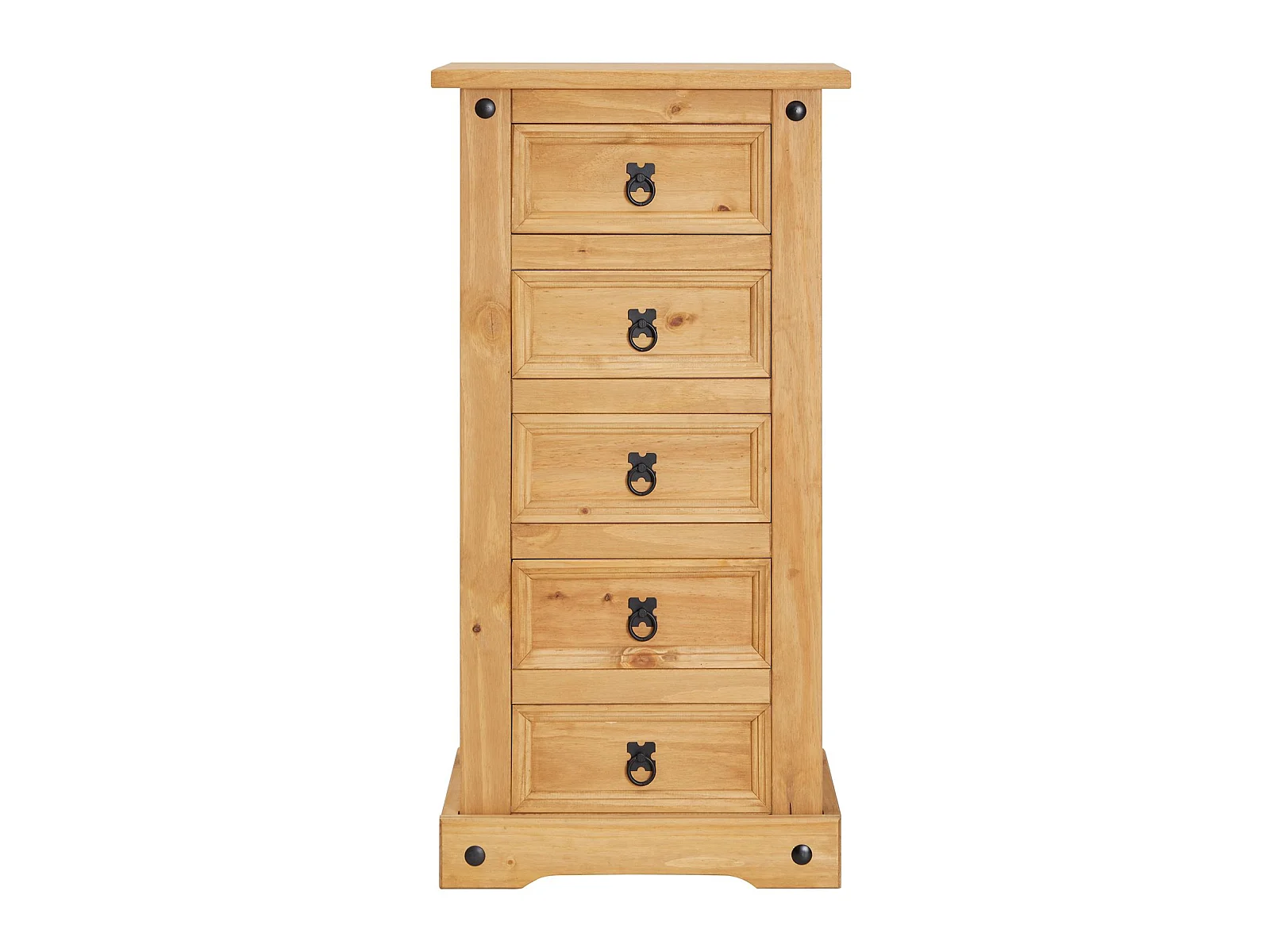 Chiffonnier SALSA commode en bois style mexicain avec 5 tiroirs, en pin massif finition teintée/cirée