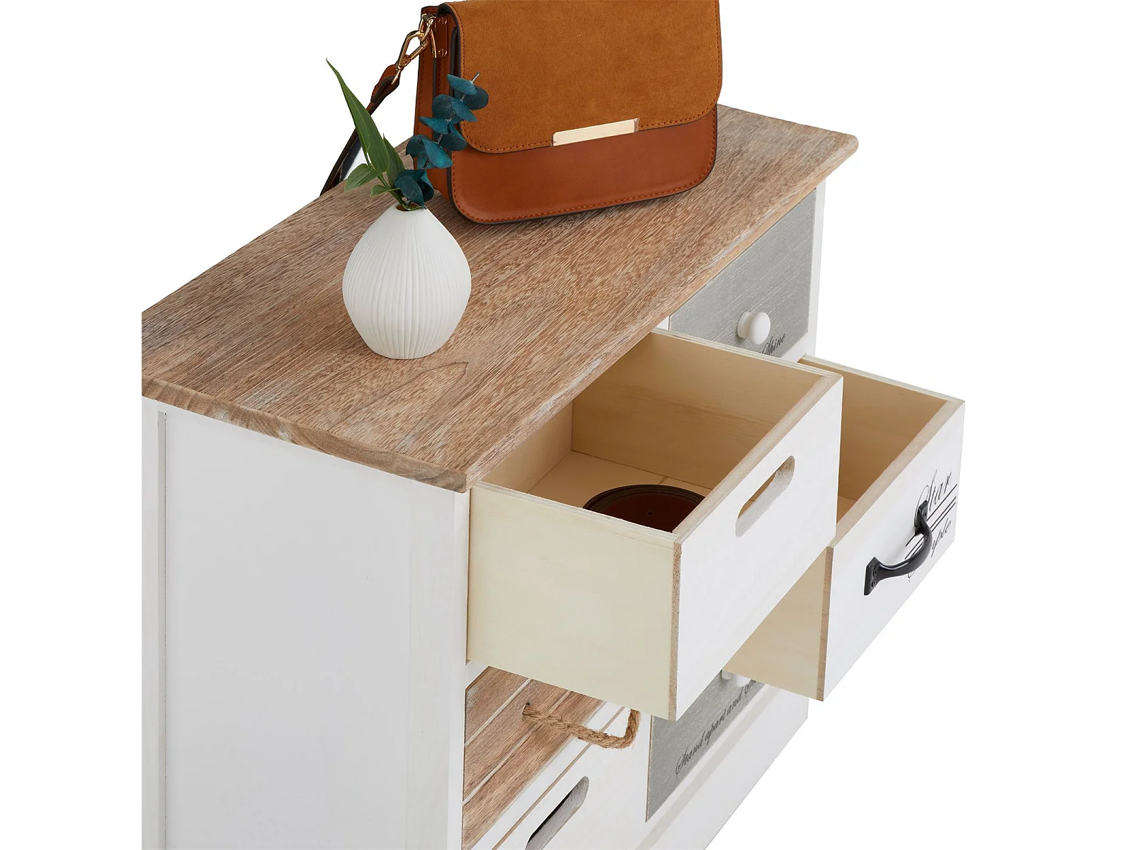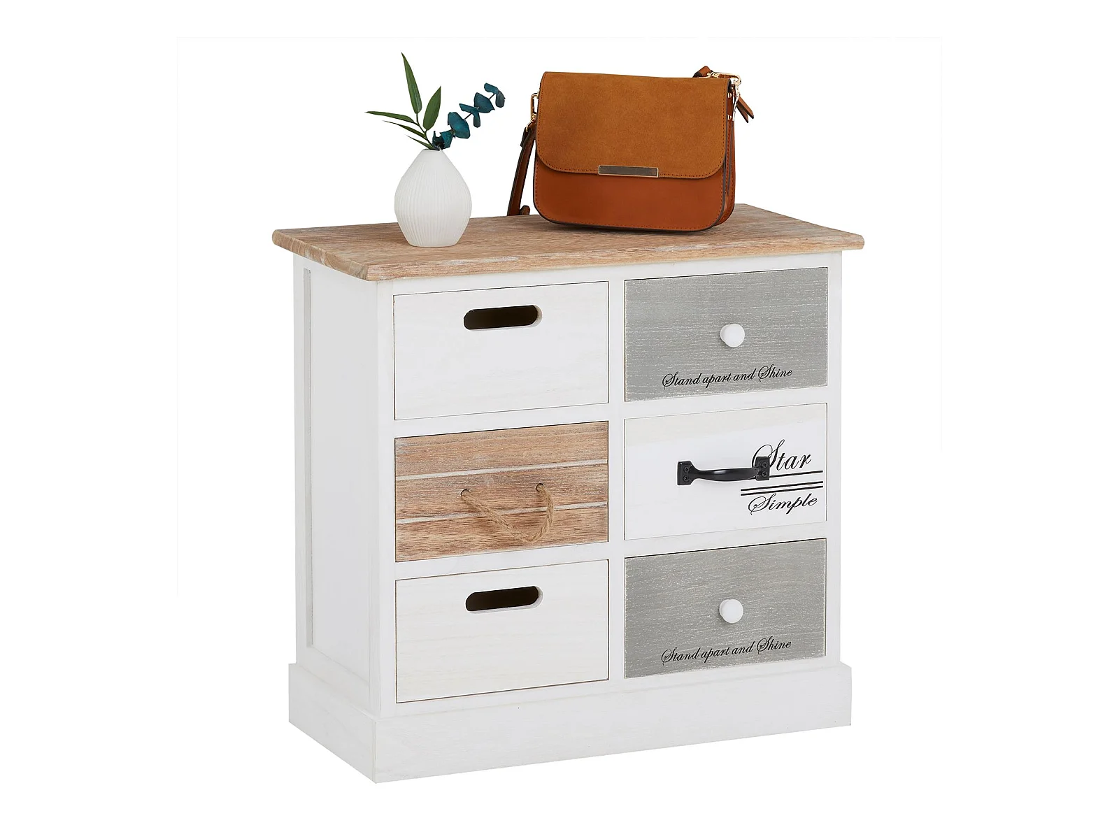 Chiffonnier SALVA petite commode avec 6 tiroirs en bois de paulownia style shabby chic vintage rustique blanc