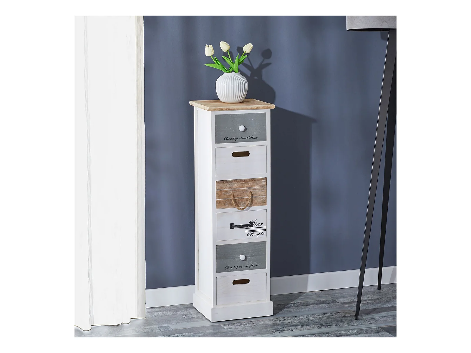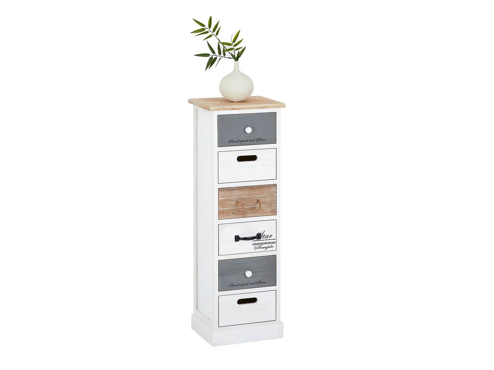 Chiffonnier SALVA petite commode avec 6 tiroirs en bois de paulownia style shabby chic vintage rustique blanc