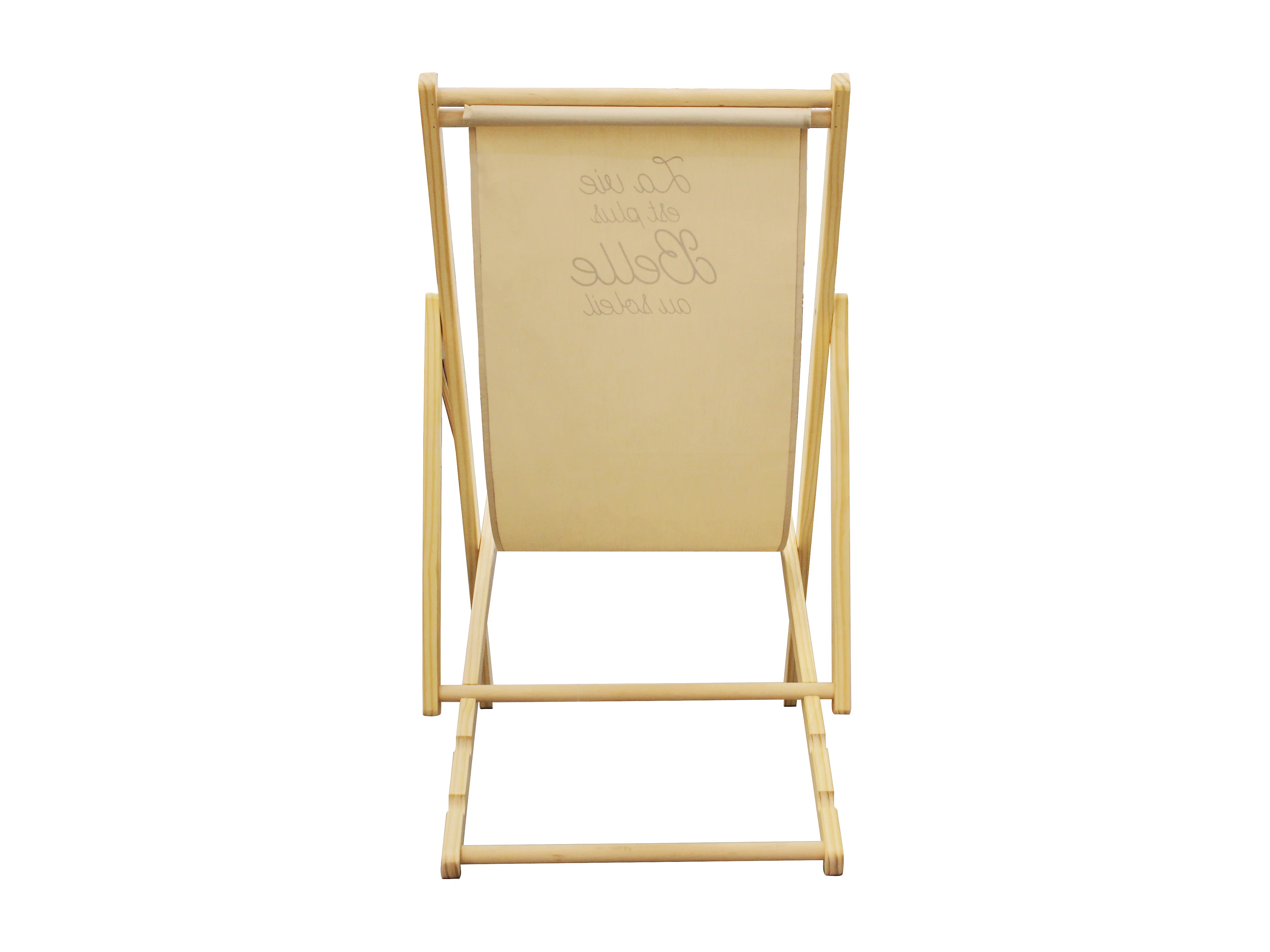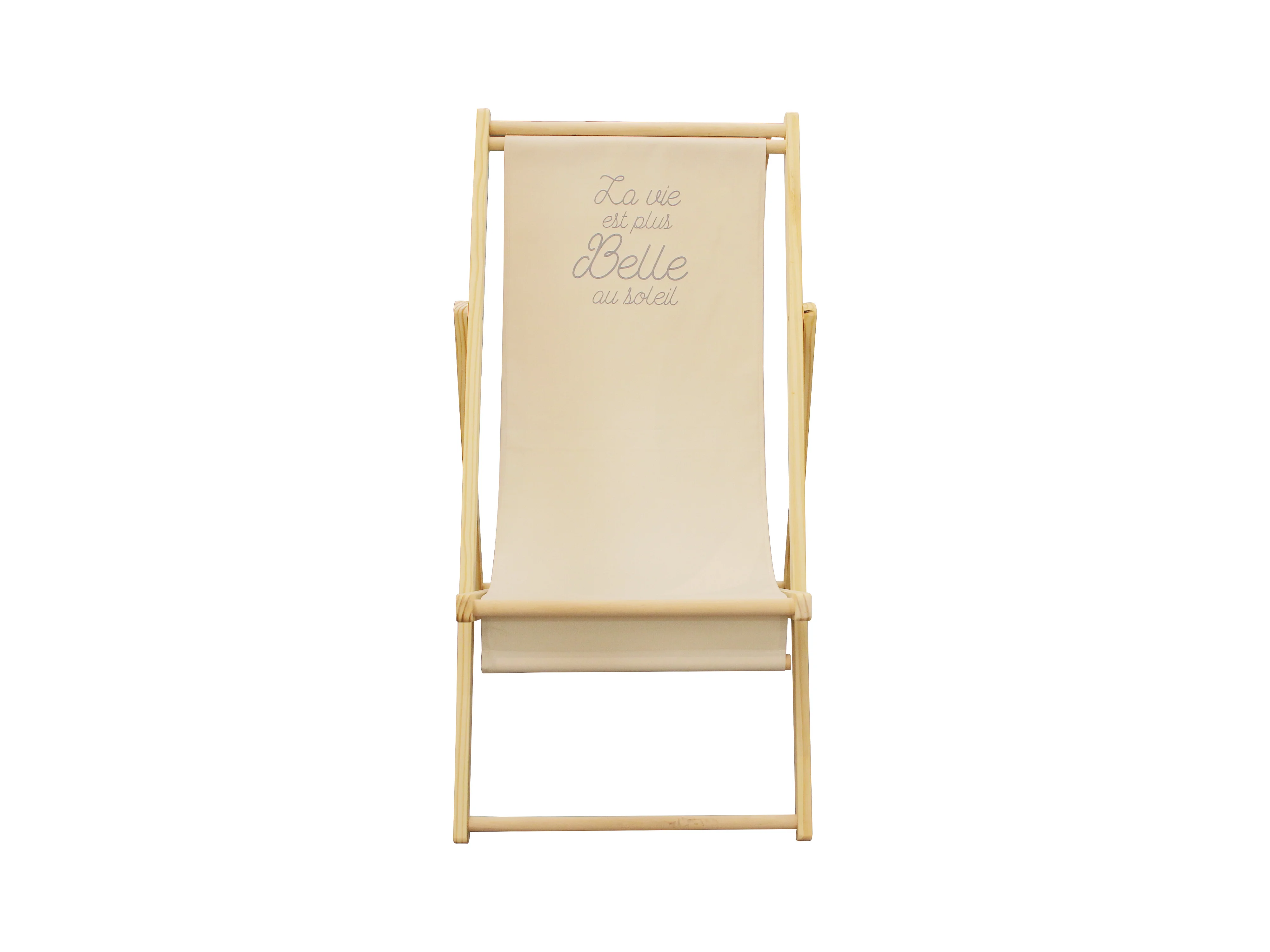 Chaise longue de jardin pliable beige en bois chilienne 3 positions de couchage jusqu'à 120 kg usage intérieur et extérieur balcon terrasse patio