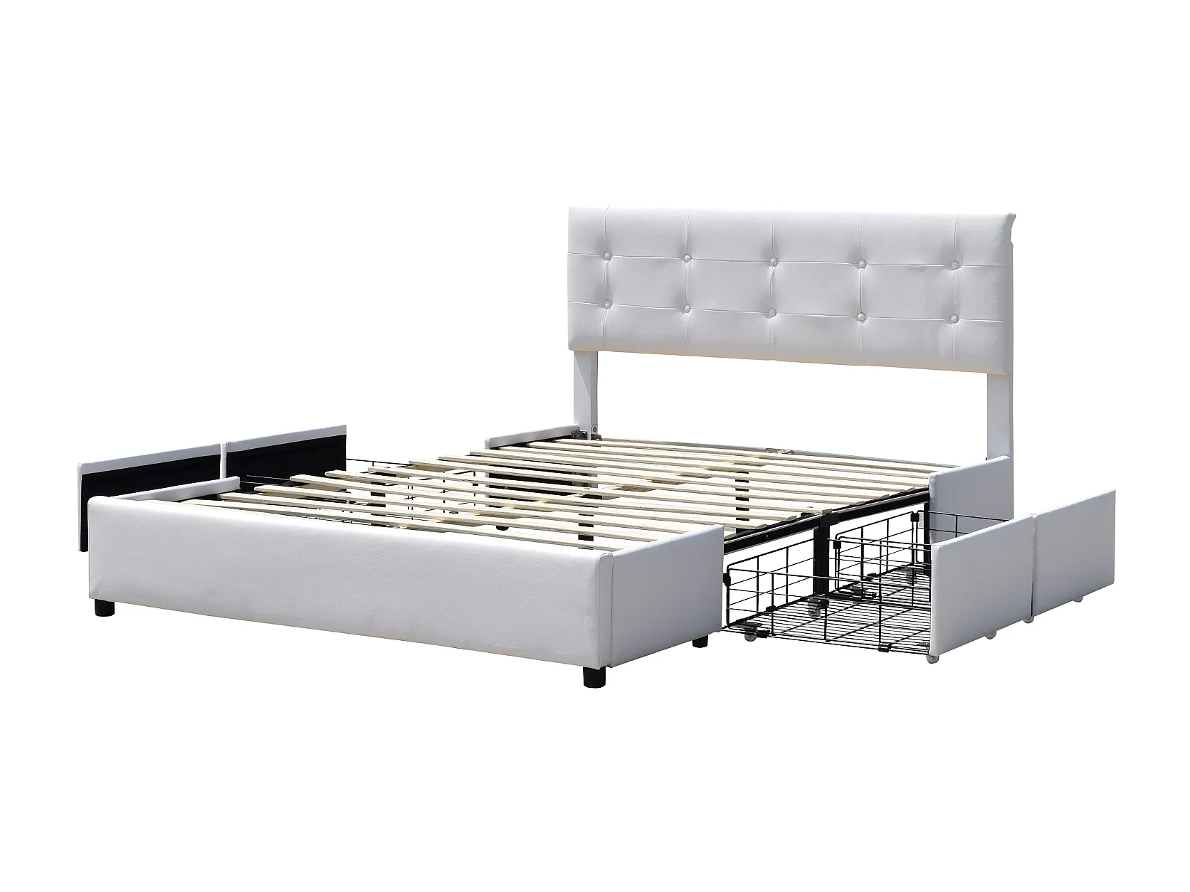chloe - Solide et Confortable Lit 140x190 avec Sommier avec 4 tiroirs Tete de lit Couleur BLANC Pieds en 4 cm