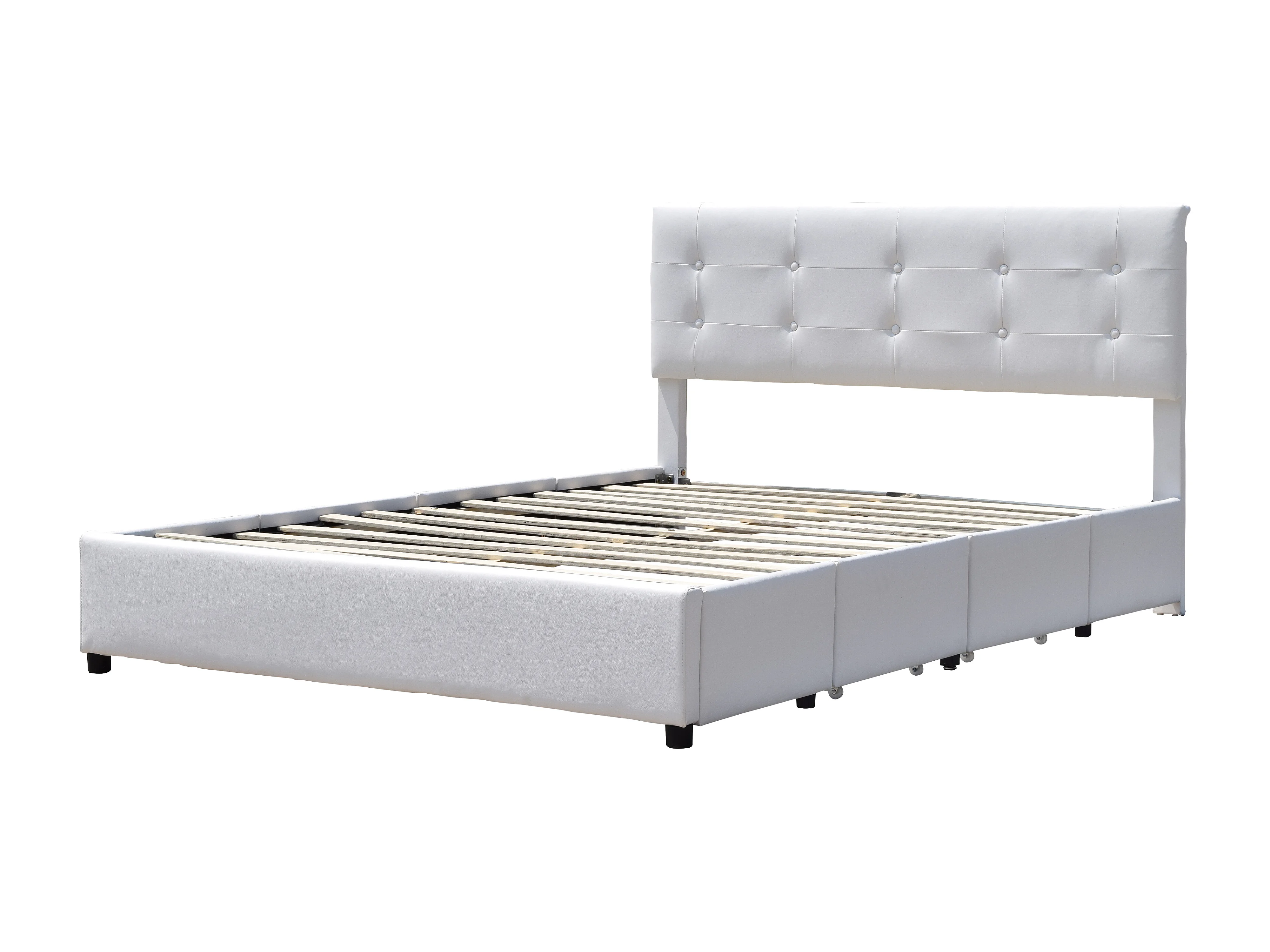 Chloe - Solide et Confortable Lit 140x200 avec Sommier avec 4 tiroirs + Tete de lit Couleur Blanc + Pieds en 4 cm - 13 L