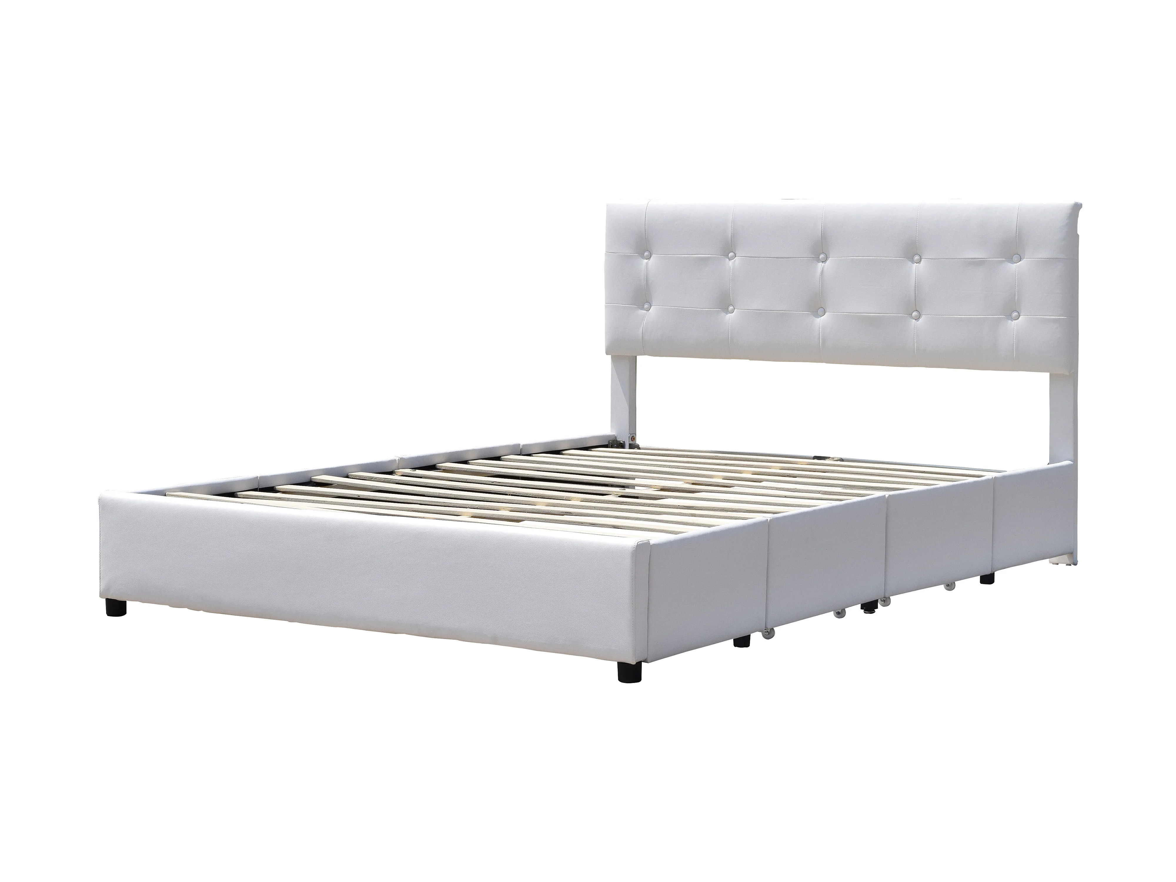 chloe - Solide et Confortable Lit 140x200 avec Sommier avec 4 tiroirs Tete de lit Couleur BLANC Pieds en 4 cm