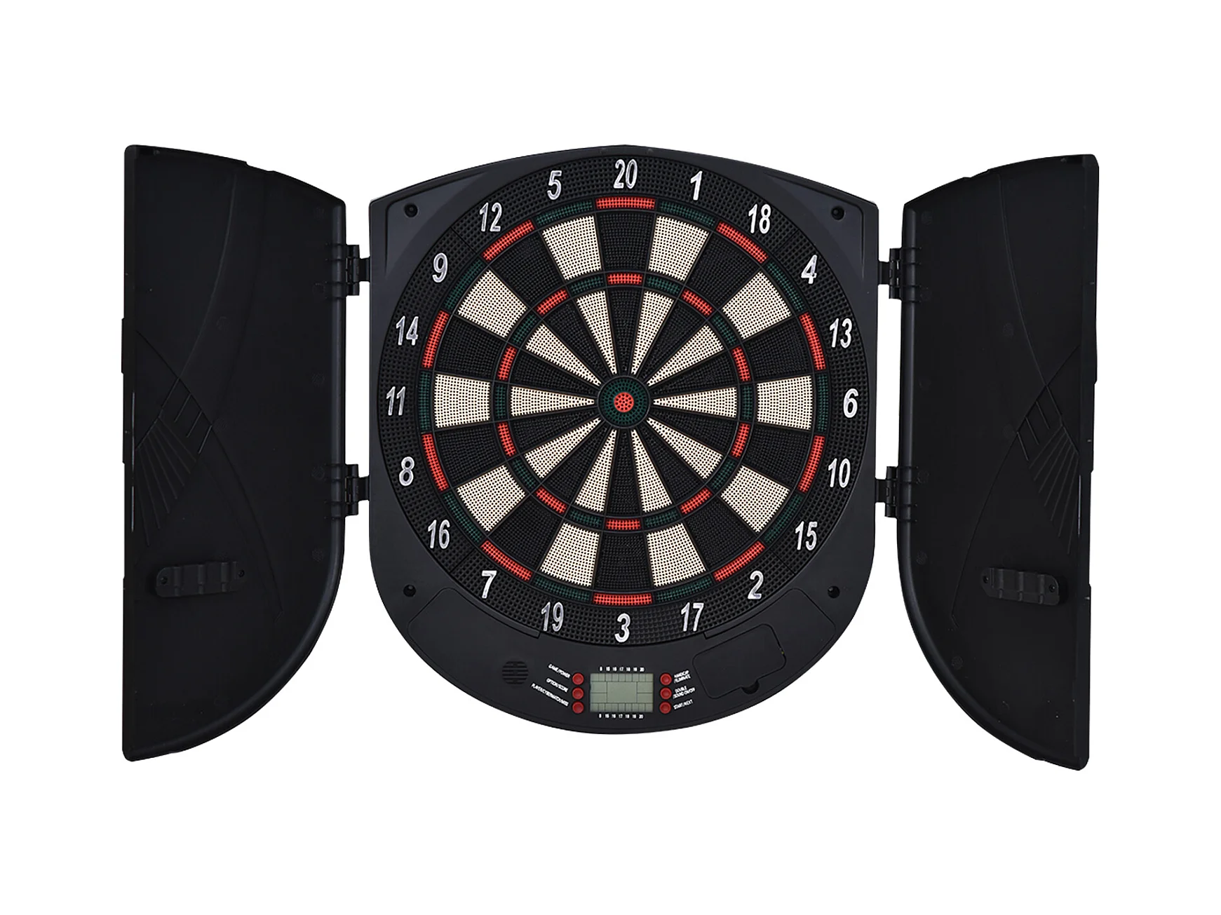 Cible jeu de fléchettes électronique refermable 27 jeux 202 variations jusqu'à 8 joueurs affichage LED haut-parleur noir