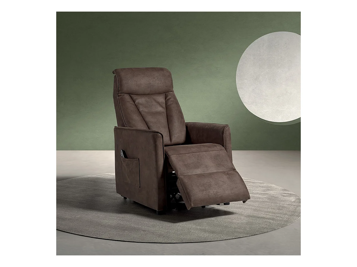 CILLIAN - Fauteuil Relax Electrique Suédine Brun Foncé