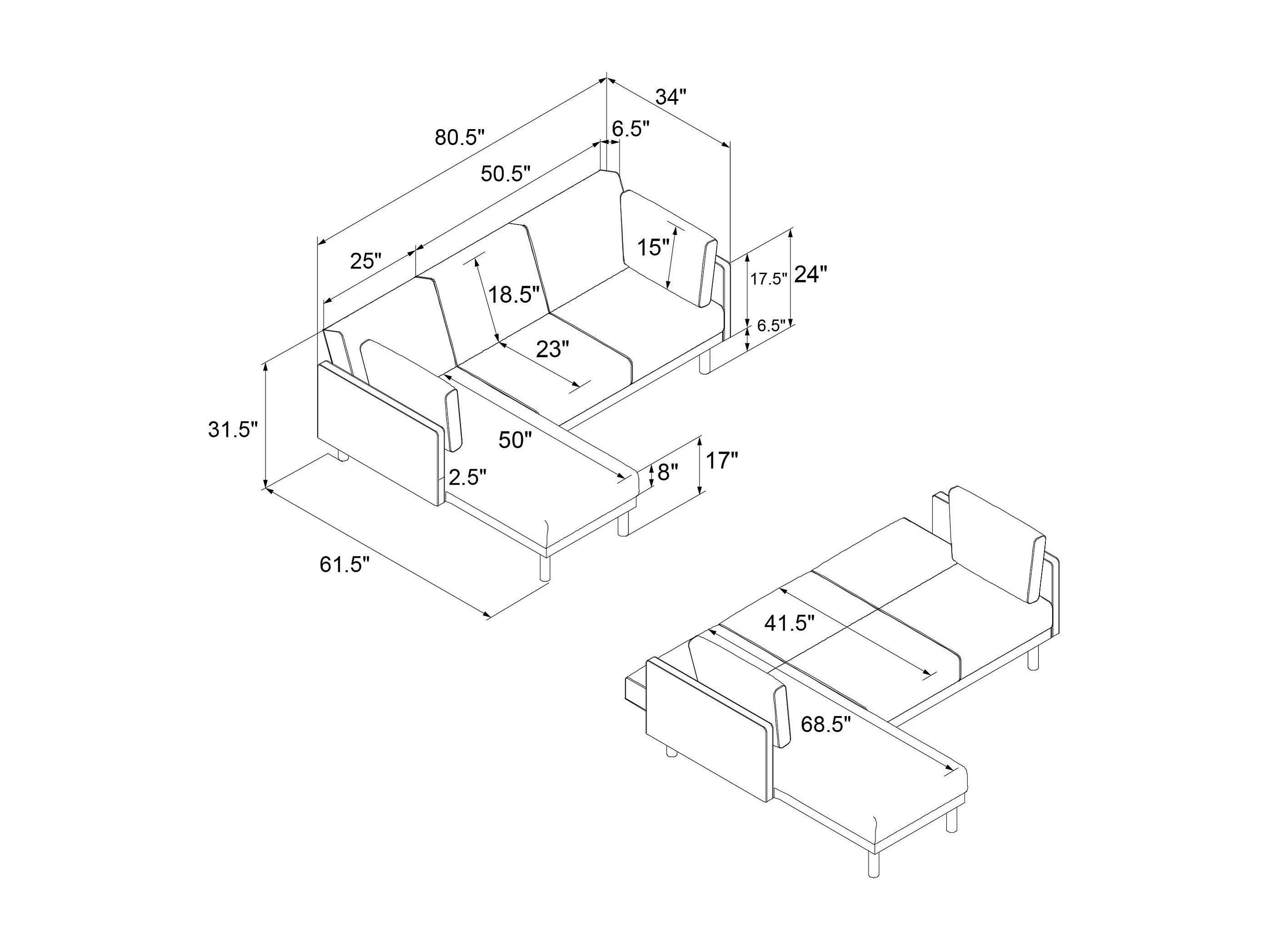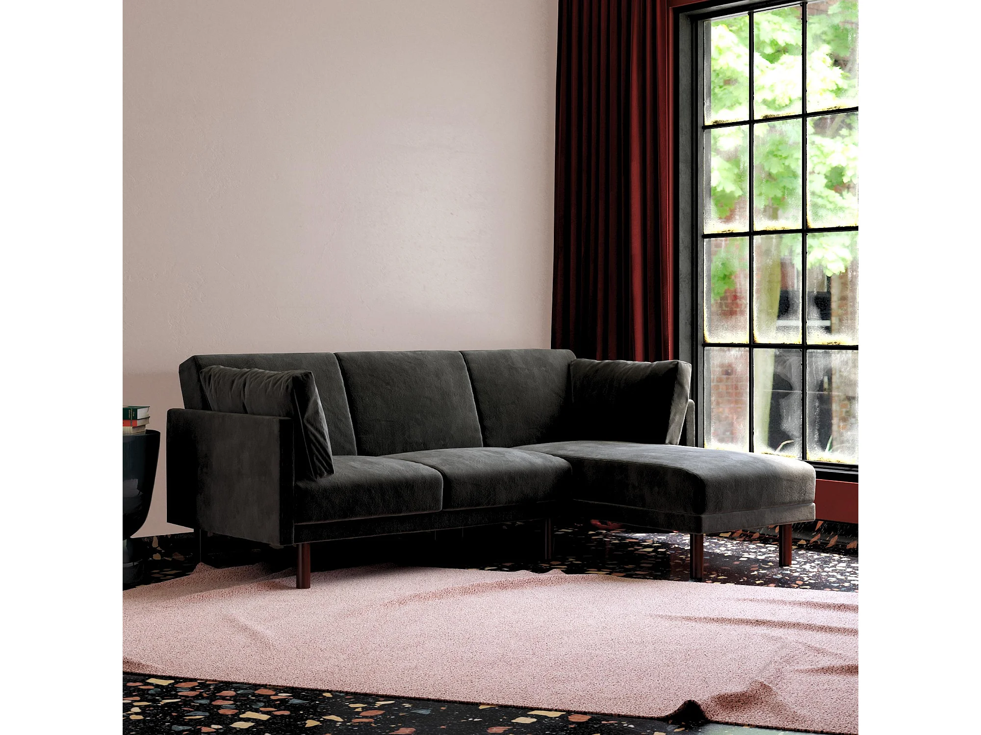 Clair | Canapé-lit 3 places avec chaise longue en velours noir
