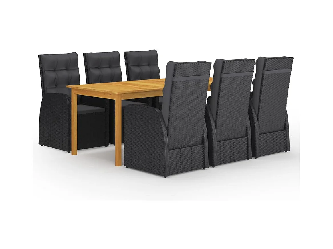 Claire-Giselle-Marie Ensemble à manger de jardin 7 pcs Noir