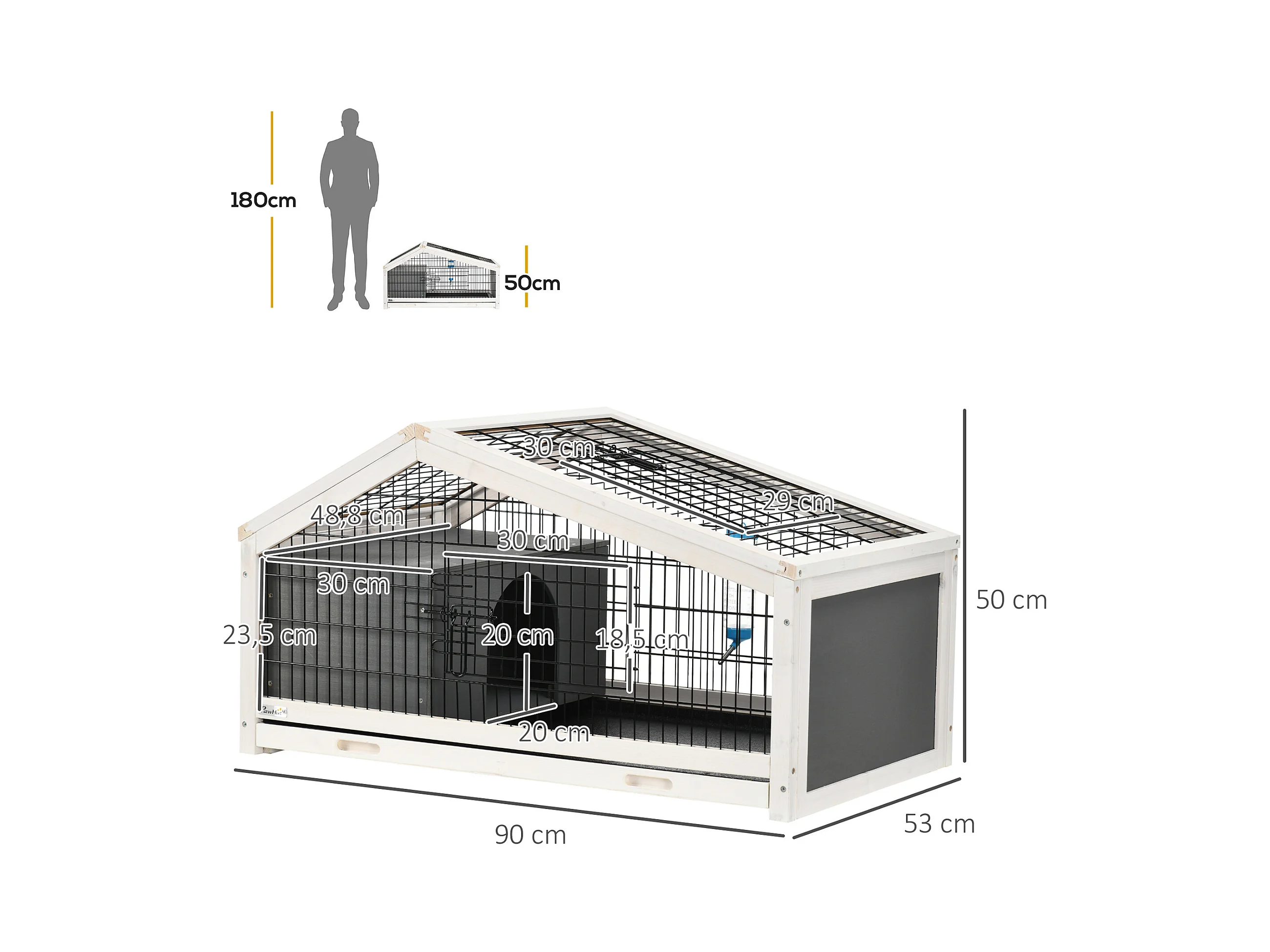 Clapier de sol enclos extérieur niche porte double toit ouvrant fil métallique bois sapin pré-huilé peint gris blanc
