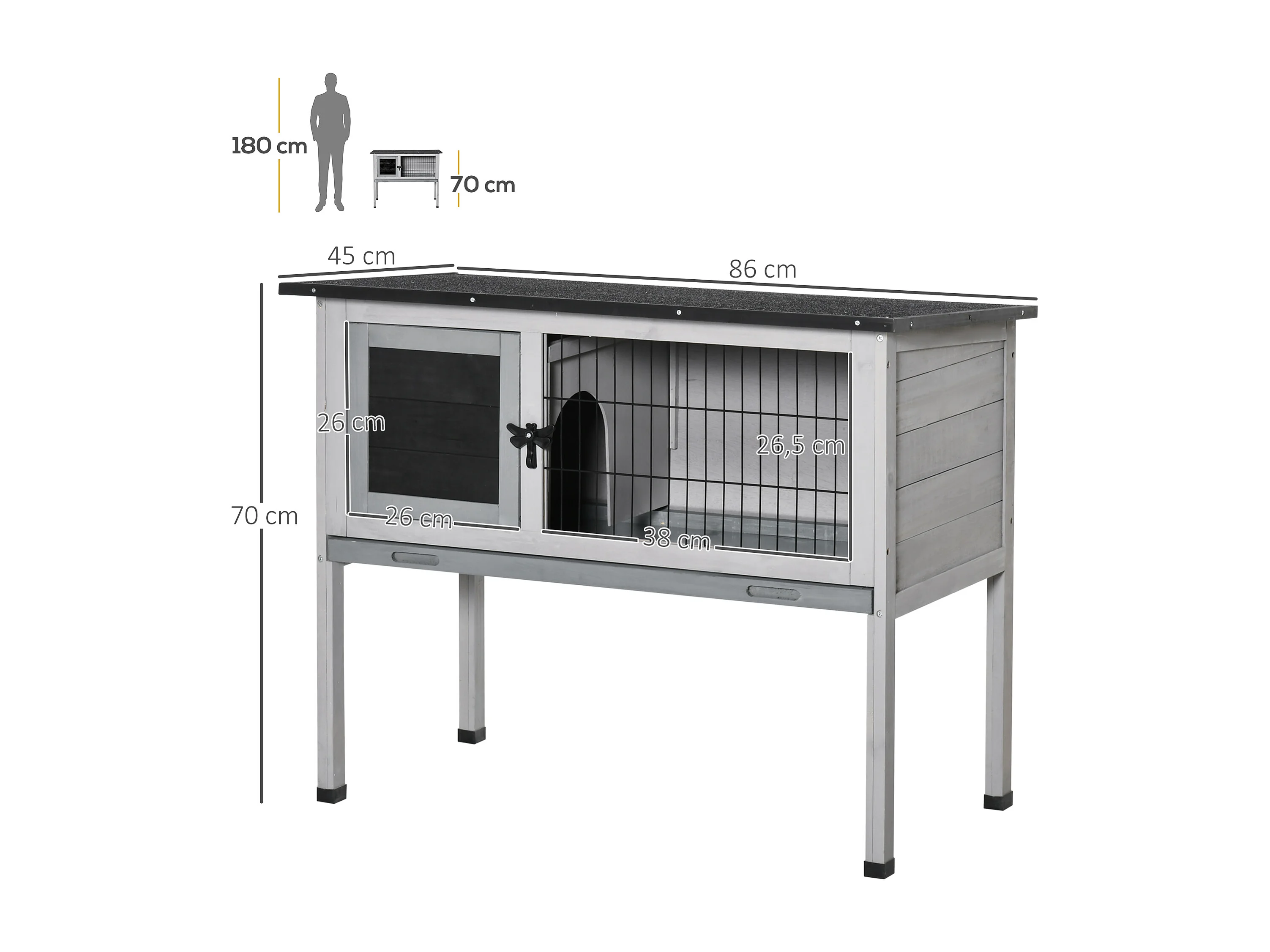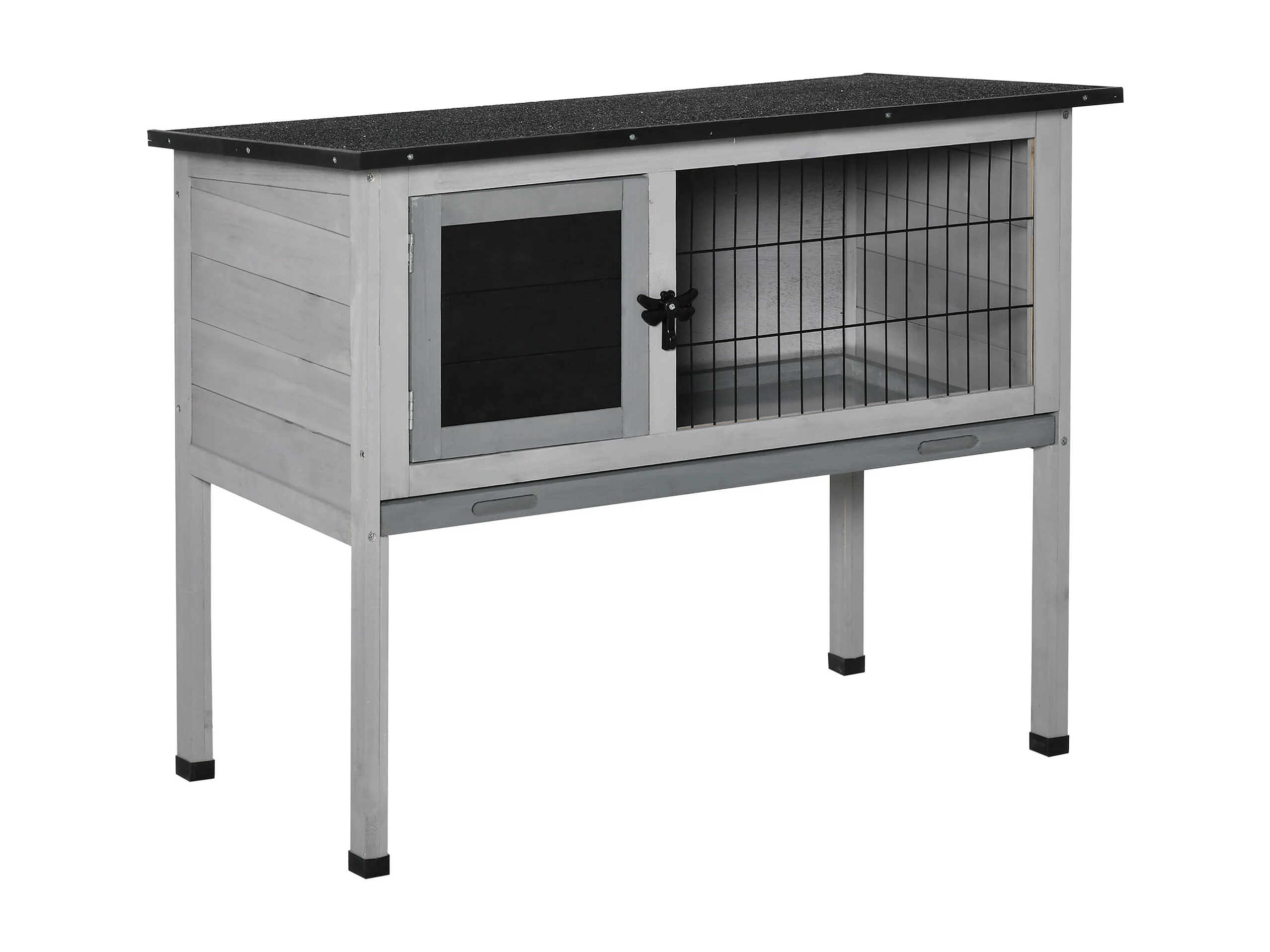 Clapier sur pied cage à lapin avec niche intérieure plateau excrément coulissant porte verrouillable toit ouvrant bois sapin gris